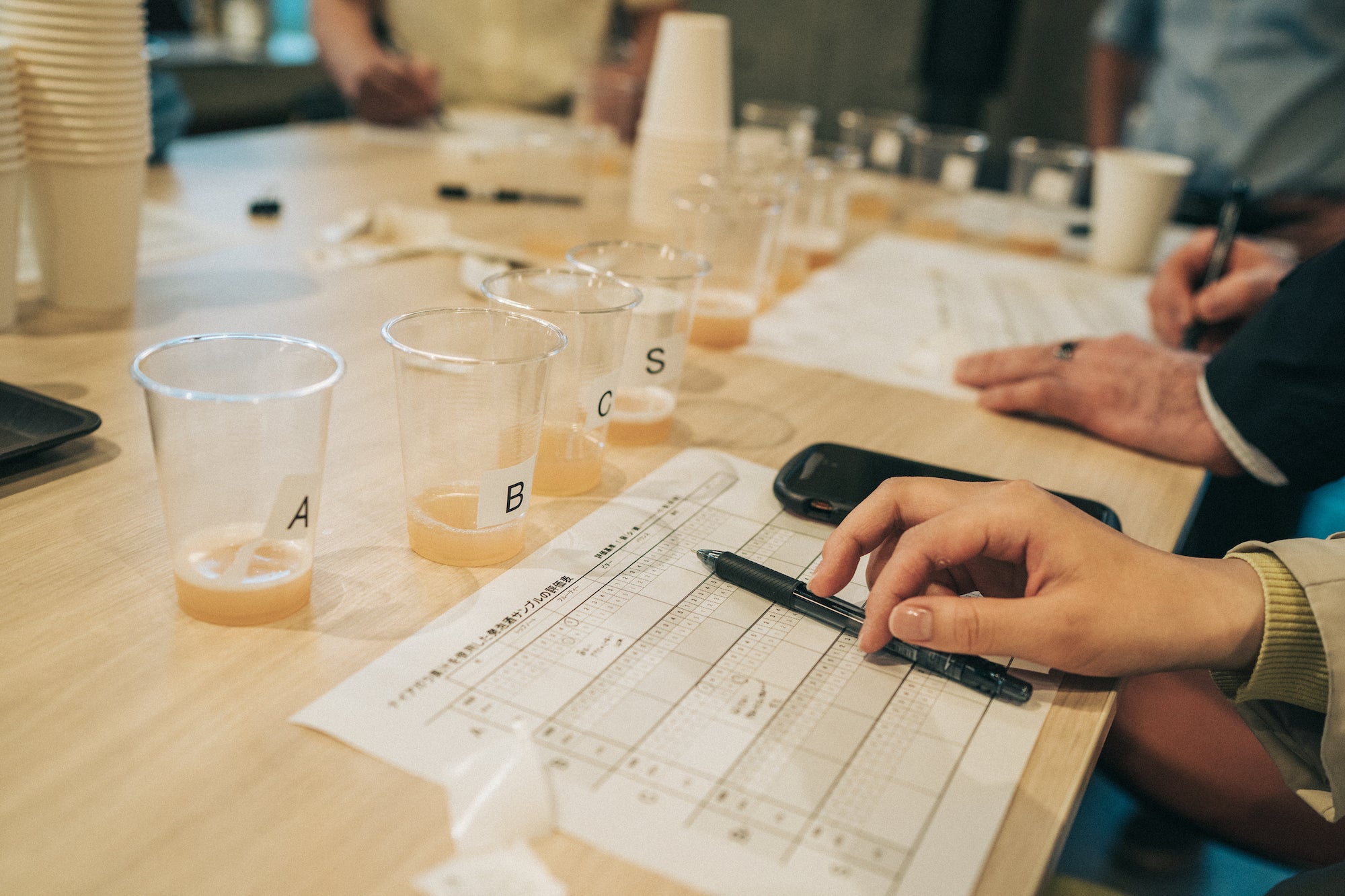 試作していただいたクラフトビールは、果汁の配合を変えたもので試飲会を行いました