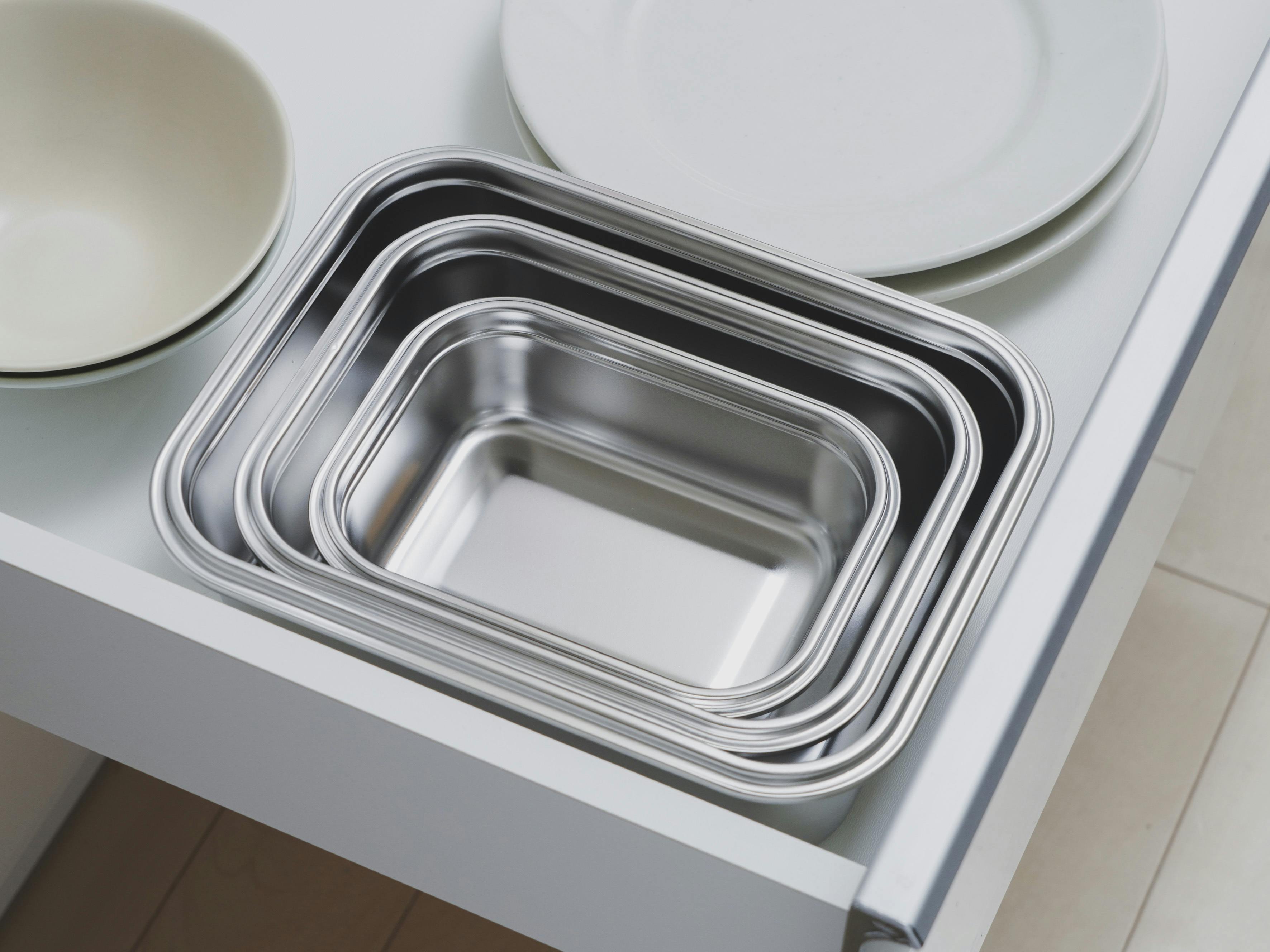 サイズは、大・中・小の3種類。小さいものはお弁当や副菜入れに、大きいものはラザニアやカレーなど大人数用に。さまざまな用途で使えます。