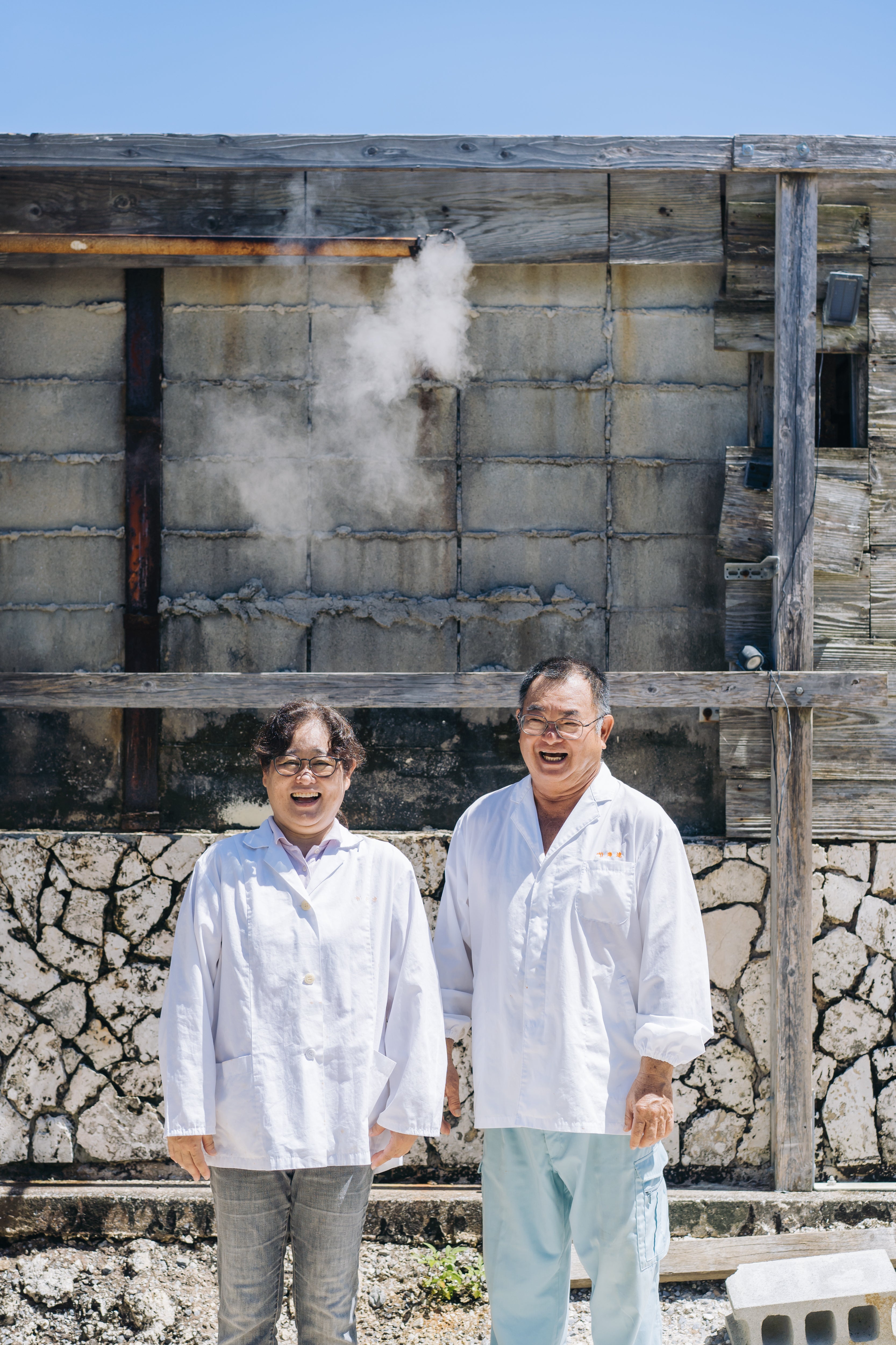 美しい神聖な久高島の海からつくられた貴重な塩は、昔ながらの平釜製法でご夫婦二人の手で丁寧に丁寧につくられています。