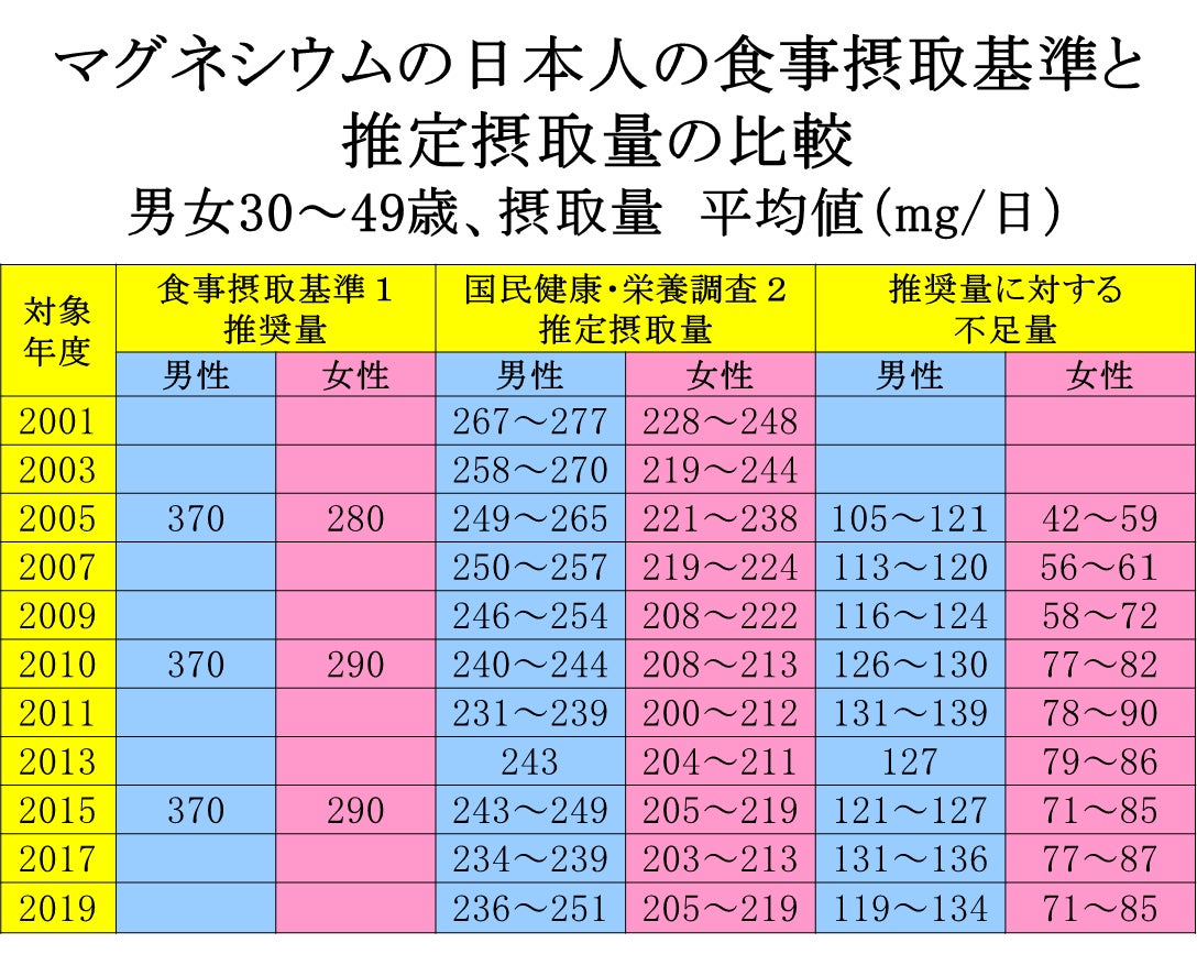 出典元:2019(令和元)年国民のマグネシウム摂取量 http://mag21.jp/contents/615