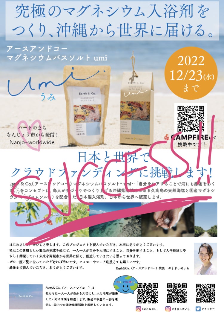 「究極のマグネシウム入浴剤をつくり、沖縄から世界中に届ける」プロジェクト始動!