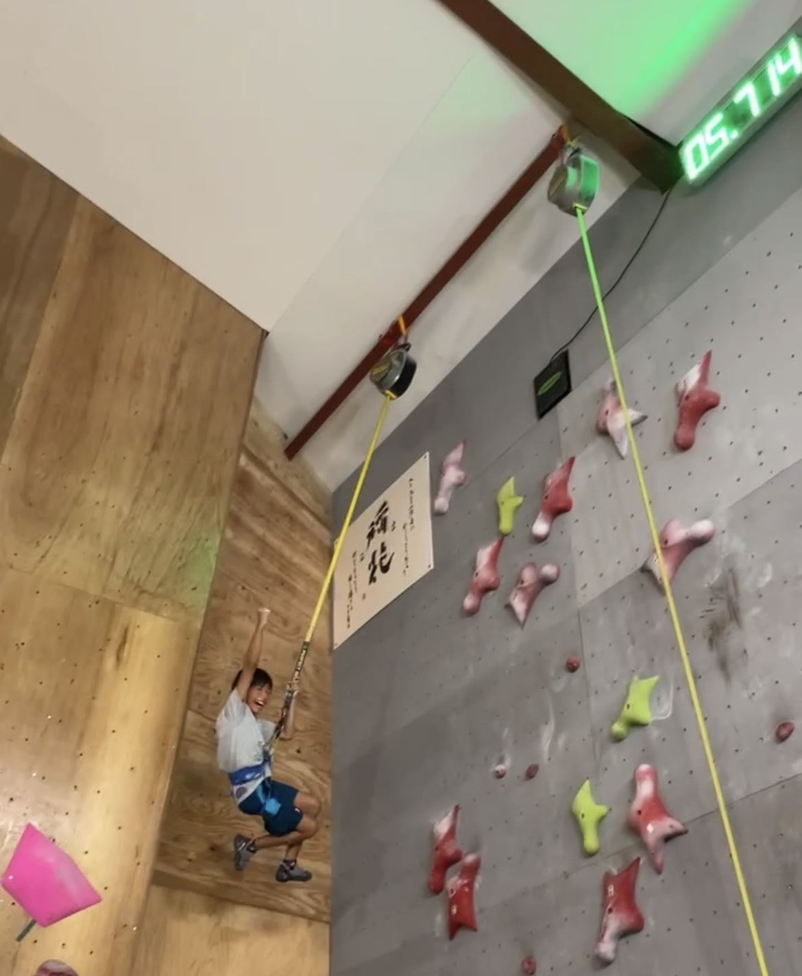 幼少期にスピードクライミングに触れ、友達と競い合い、正規のスピードルートを登れる頃にはスピードで求められるセンスは磨かれている。というプロセスがスピード選手育成において1番効率の良いプラセスだと僕は考えています。