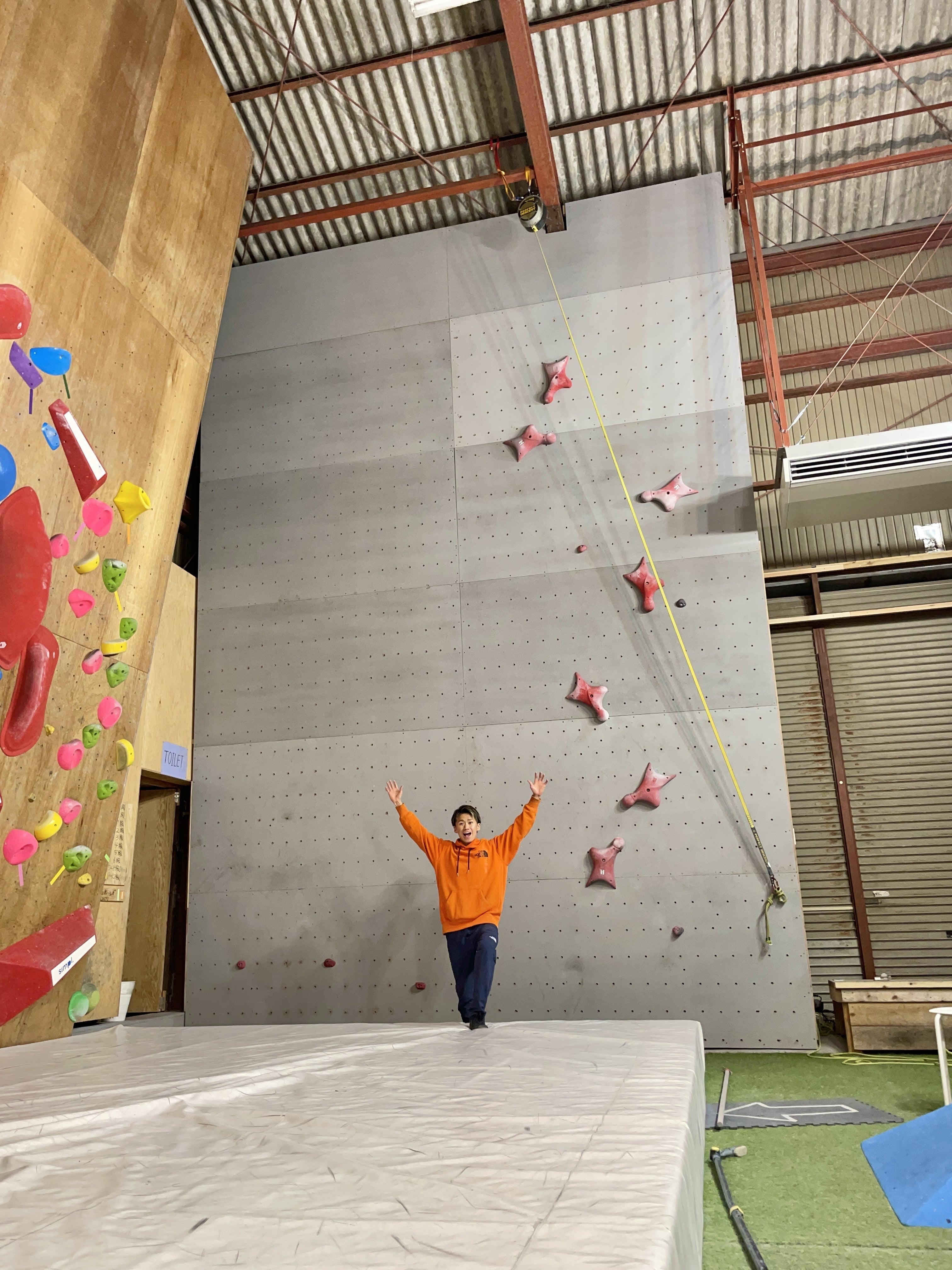 キッズや初心者の方ももちろんですが、池大自身のトレーニング壁としても大活躍しています!!!先日自己ベストとなる5.38秒を記録しましたが、それは皆さんの協力で完成したOLIOLI壁での練習のおかげです!!!また、正直5.38では納得のいかないような仕上がりに到達しているので、5.1や5.2をすぐマークし、日本記録を池大が出してしまおうと企んでいます!!また、千葉県の選手が多く練習に来ています。OLIOLIのスピード壁は千葉県の選手のレベルアップにかなり貢献しています!クラウドファンディングの目的の一つでもあったスピードクライミングの普及、レベルアップを実現できています!本当に、皆さんのおかげです!!!!