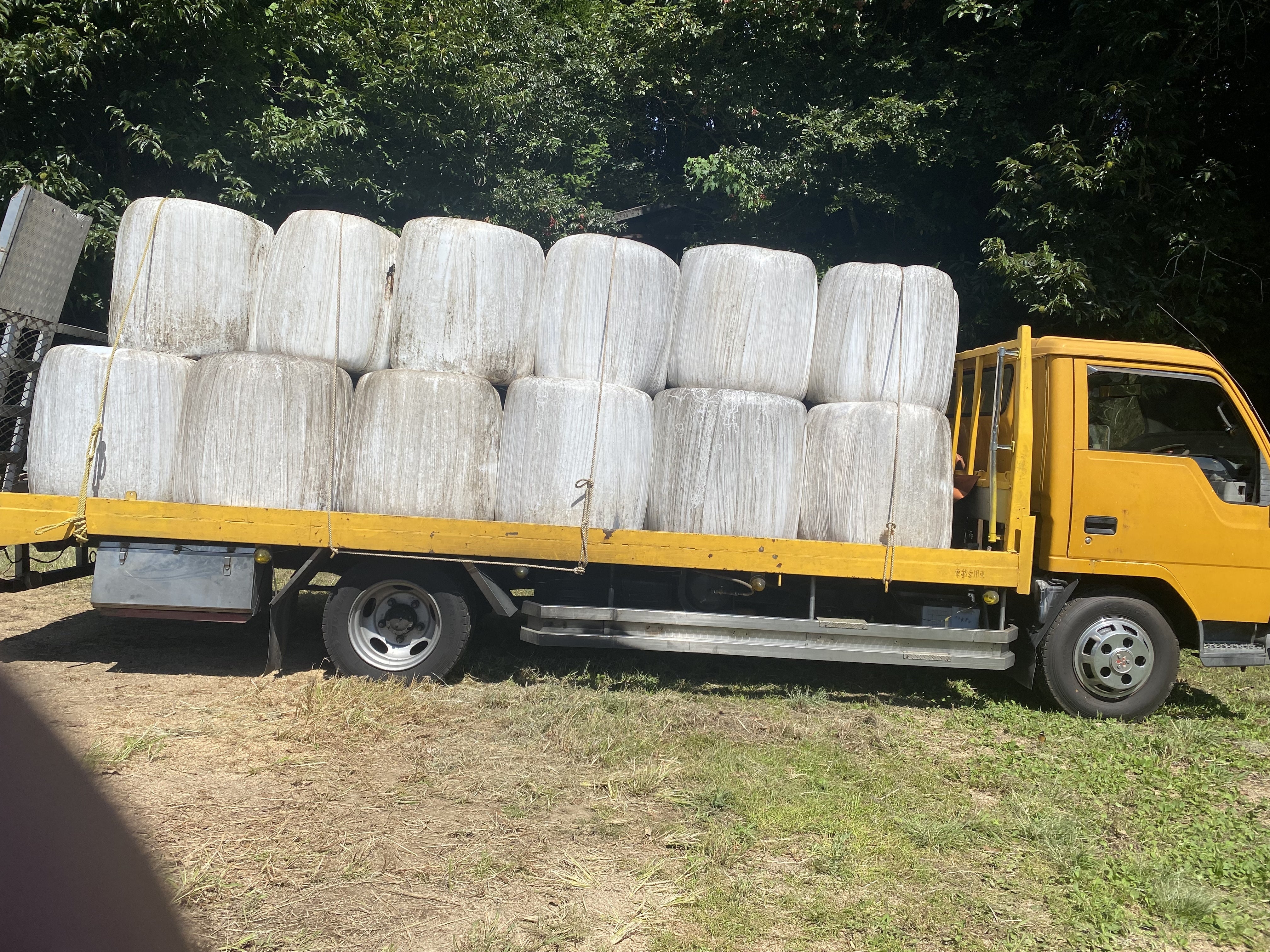 今日はこちらのロールを運んでいます。このロールは北海道や九州で良く見る事があるかもしれませんが、中身は牛の餌です。人間で言うところの缶詰みたいなものでこのような形で密閉すると保存が効くのです。