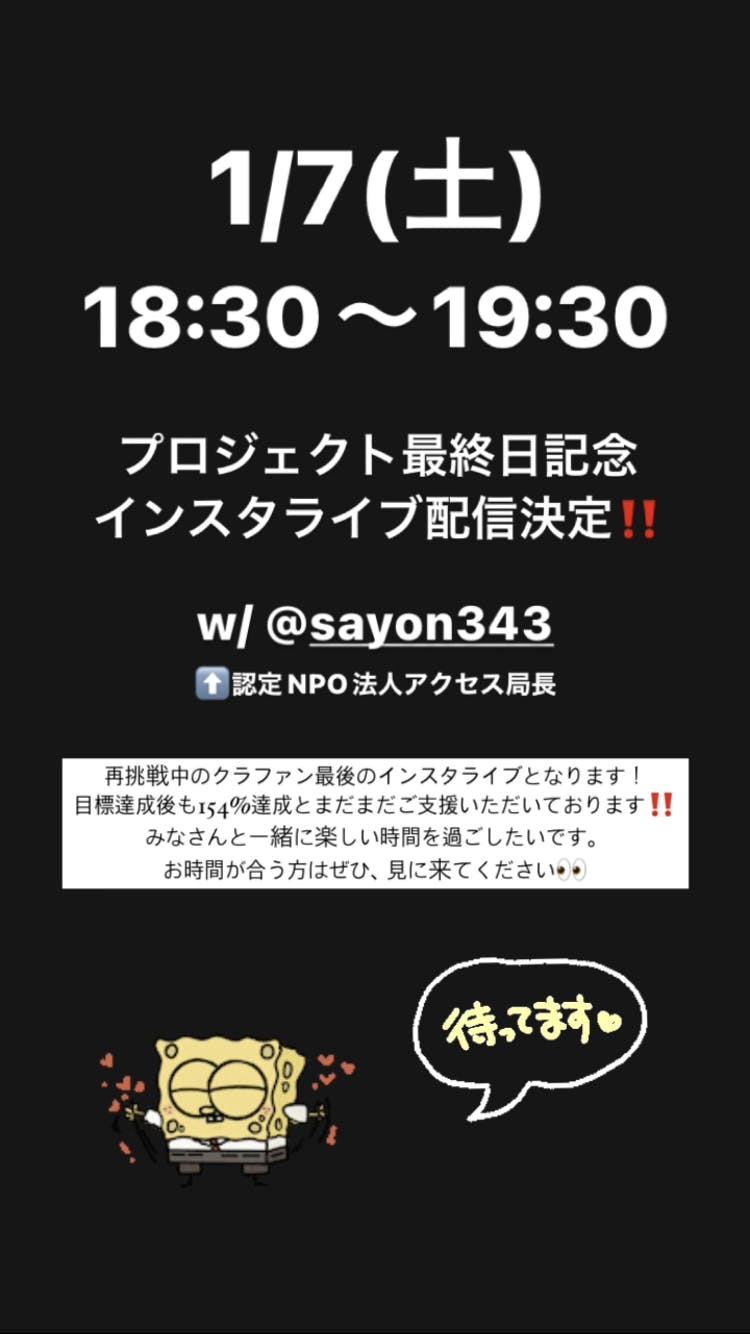 本日1/7(土)18:30〜このプロジェクトの最終インスタライブを行います‼︎