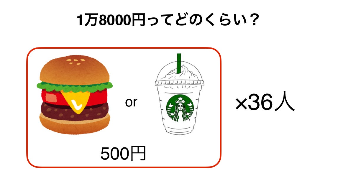 例えばマクドナルドの500円のセットかスターバックスコーヒーのフラペチーノ1杯分(=約500円)の代金を36人がシェアして下さると、1人の生徒が1年間学校に通うことができる。