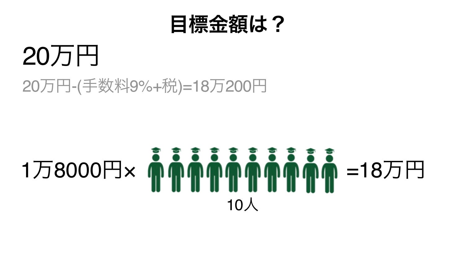3万5500円(≒1万8000円×3人分)の資金を集めることができました。