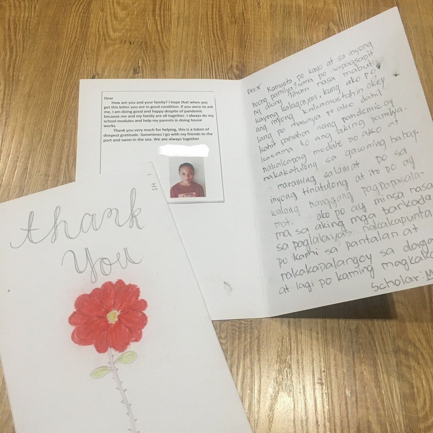 今はまだ実際に現地に行くことはできませんが、将来大学生や大人になって現地を訪れた時に、実際に現地の人と自分の言葉でコミュニケーションをとりたいと思い、支援先にフィリピンを選びました。