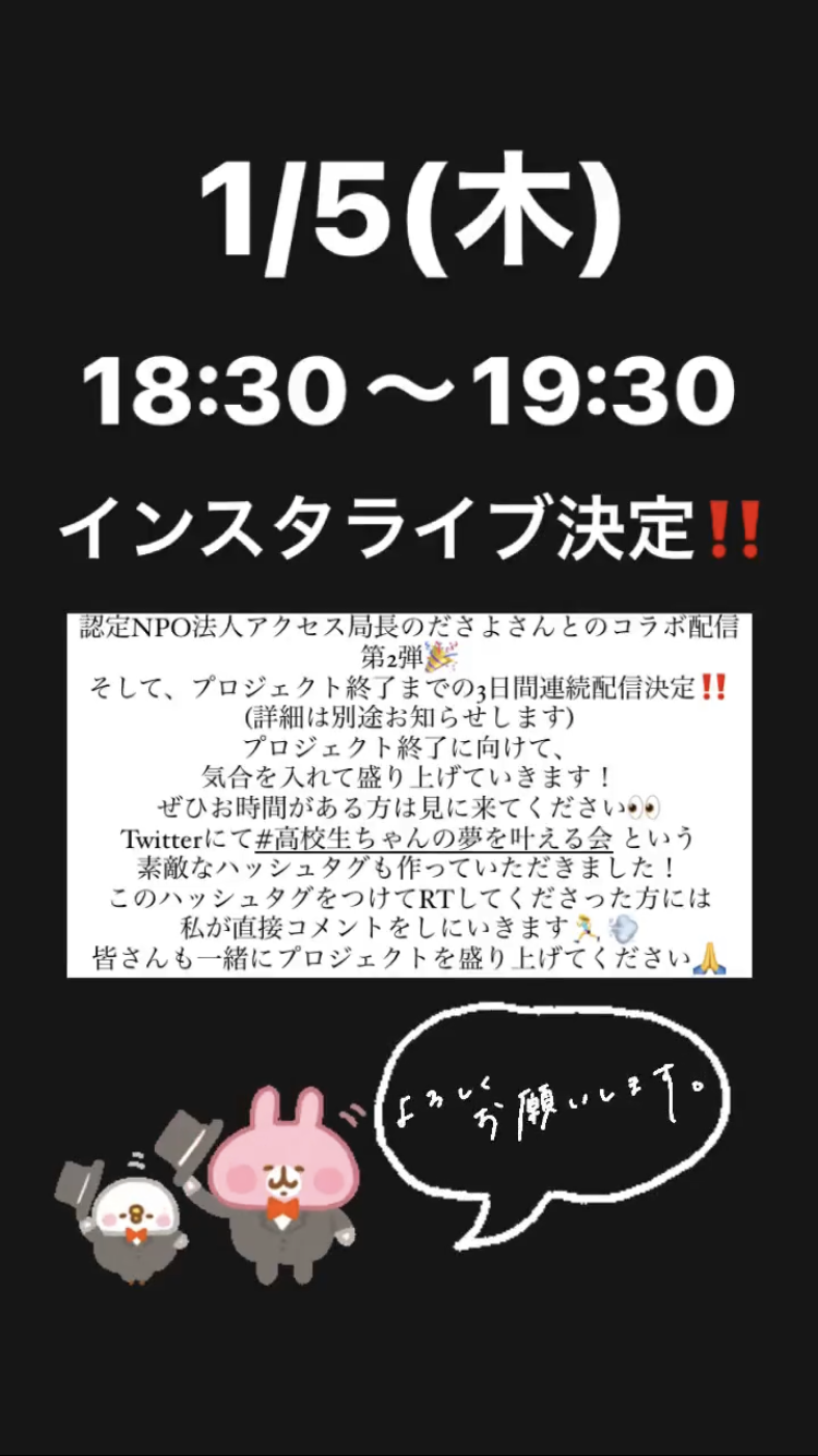 プロジェクト終了まであと3日間ということで、プロジェクトを盛り上げるため、3日間連続配信を行うことを決定しました‼︎