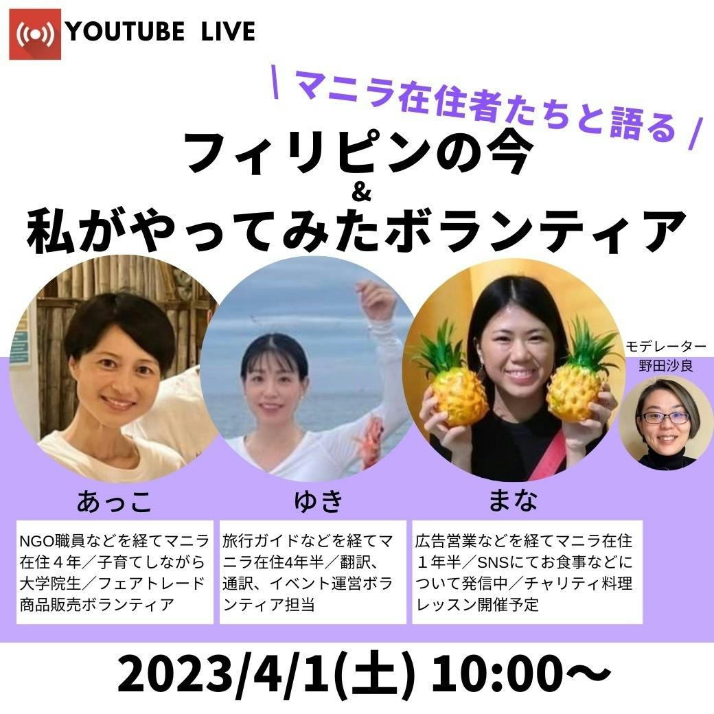 様々な形でアクセスを応援してくれている「フィリピン在住」の3人をゲストにお呼びしたトークライブです。