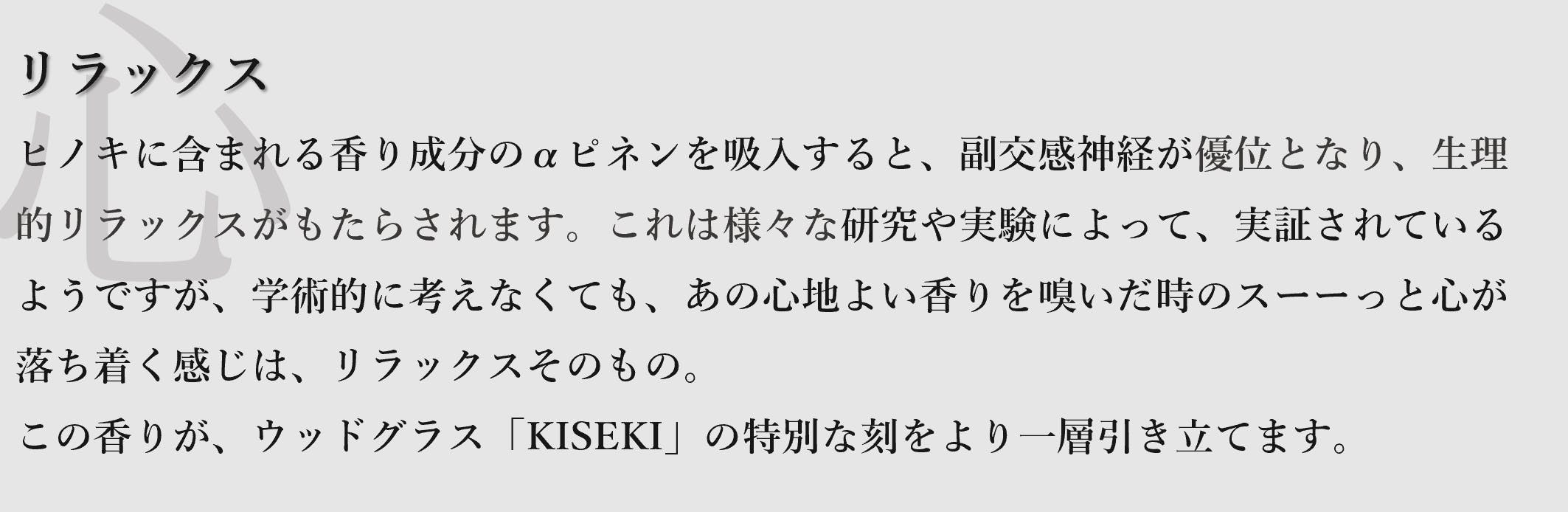 香るヒノキは、キセキの刻へと連れていってくれます。