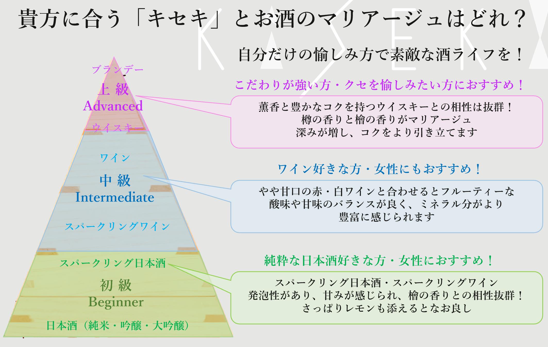 「KISEKI」ウッドグラスは、日本酒との相性はもちろんのこと様々なお酒と組み合わせても、檜特有の香りがお酒本来のコクや旨味を引き立てて、新しい愉しみも実感できます。ぜひ、色々なお酒を試して頂いて自分のベストマッチングを見つけてお愉しみください。