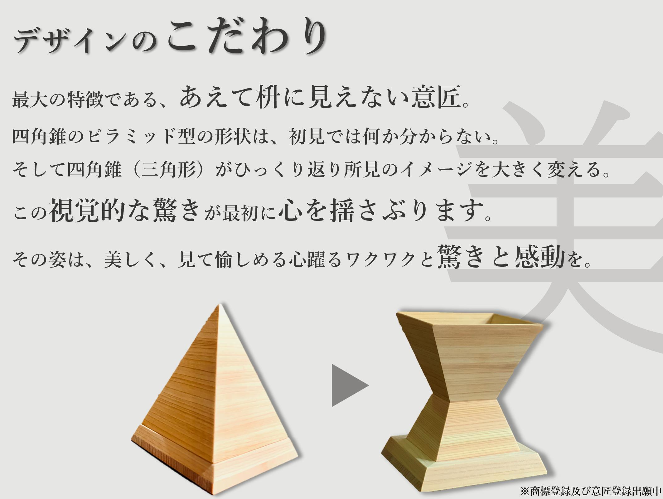 『KISEKI』シリーズ・ウッドグラスは日本の枡を世界へ広げ、未来へ継承するとともに、新たなお酒の愉しみを生み出すために、既成概念を超えるデザインとアイデアで、これまでの枡のイメージを一変させ、お酒を「五感」で愉しむ驚きと感動を実現した「新感覚の枡」であり、和酒・洋酒・インテリア・おもてなし・ギフトと、どんなシーンにも、使う方のアイデアで新たな価値をつけることができる「奇跡の器」です。