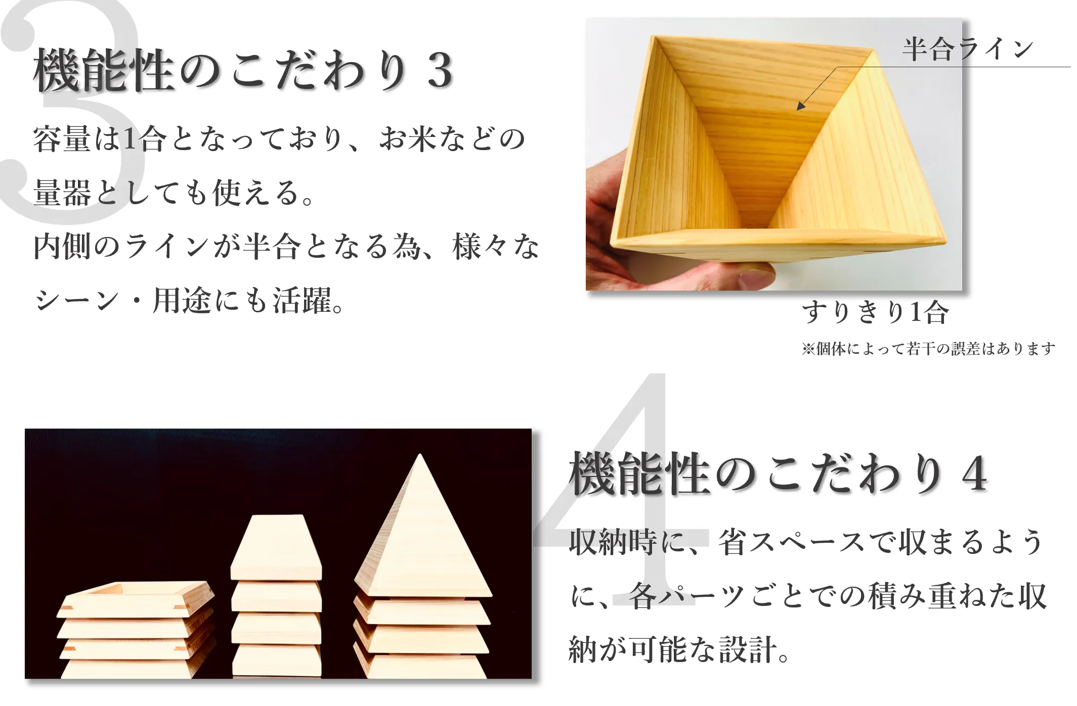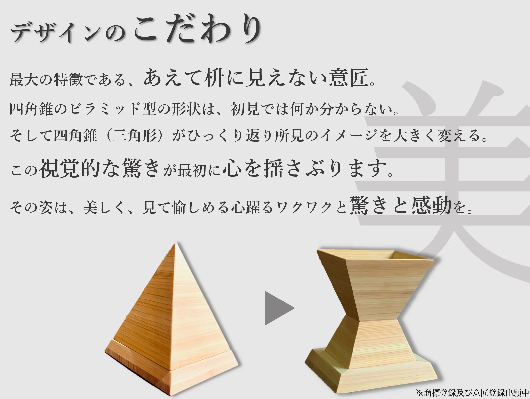 始まりは、些細な会話からおもしろいものを作ろう!枡でお酒を愉しむ事をもっと日常的に広めよう。という事からスタートしましたが、開発が進むにつれ、知らなかった沢山の事を知り、様々な壁にぶつかりながら、「この新しい枡を生み出す意味」について深く考えるようになりました。