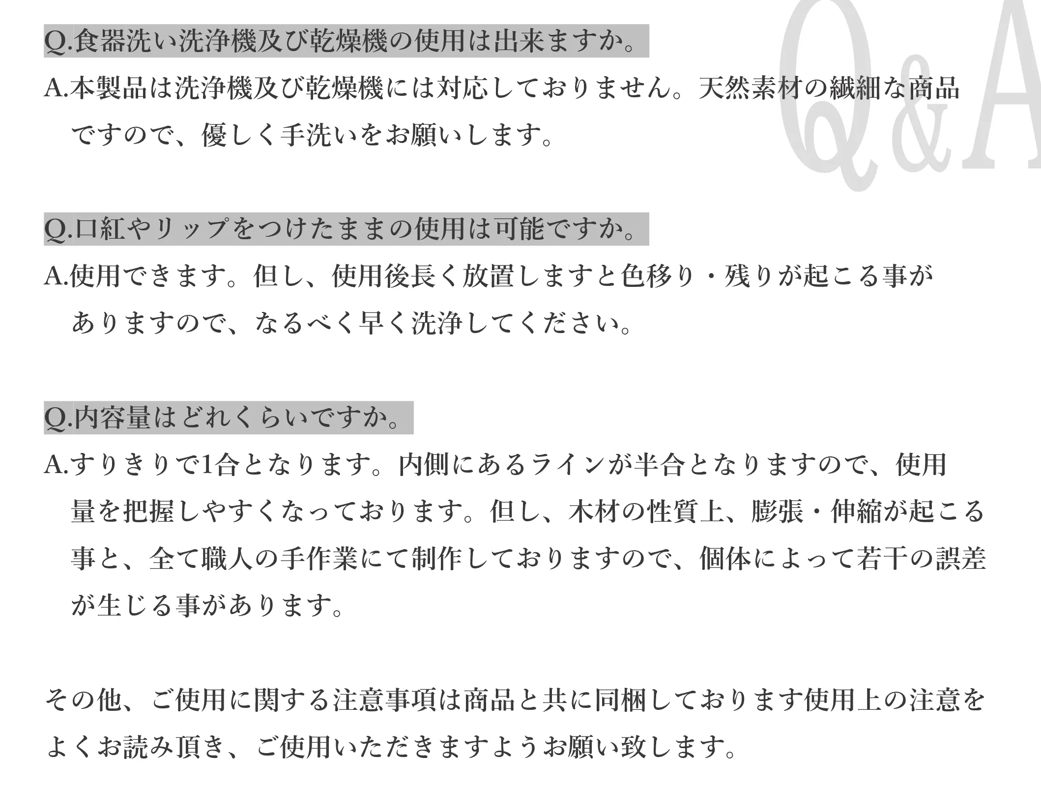 ・本製品は、天然素材(国産木材)を使用しており、繊細な商品となります。色味や木目は一つ一つ違い、同じものは2つとないものになりますので、不具合時の交換においては、表情が違うものをお届けする場合があります。