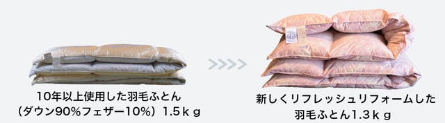 羽毛ふとんは再生できる資源です。リフレッシュリフォームを推奨します。