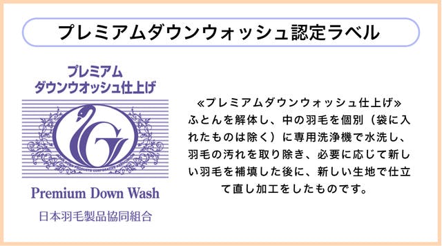 ①羽毛ふとんに品質表示が付いている(ダウン比率が確認できる)
