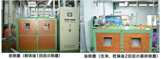 ②除塵機で羽毛を洗う前に1度、洗浄後に1度、計2回除塵します。