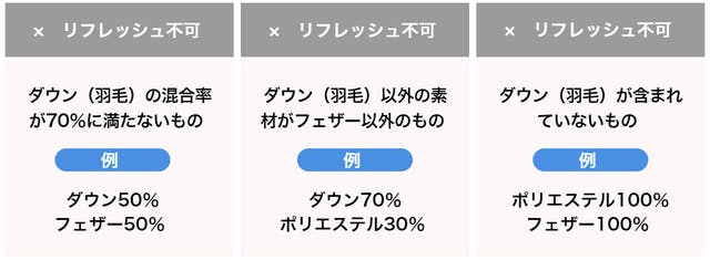 ②ダウン(羽毛)の混合率が70%以上で、残りの混合率がフェザーのもの