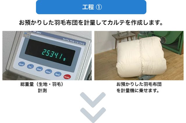 ※【ご注意ください】お預かりする羽毛の量がS:1.3kg/D:1.8kg未満の未満の場合、1.3kg/1.8kg未満の仕上がりになります。基本重量サイズの仕上がり保証(別途:増し羽毛費購入)お願いいたします。