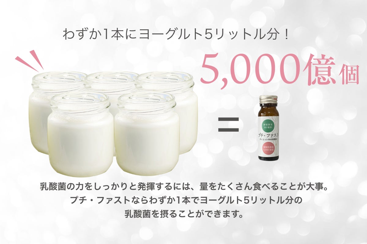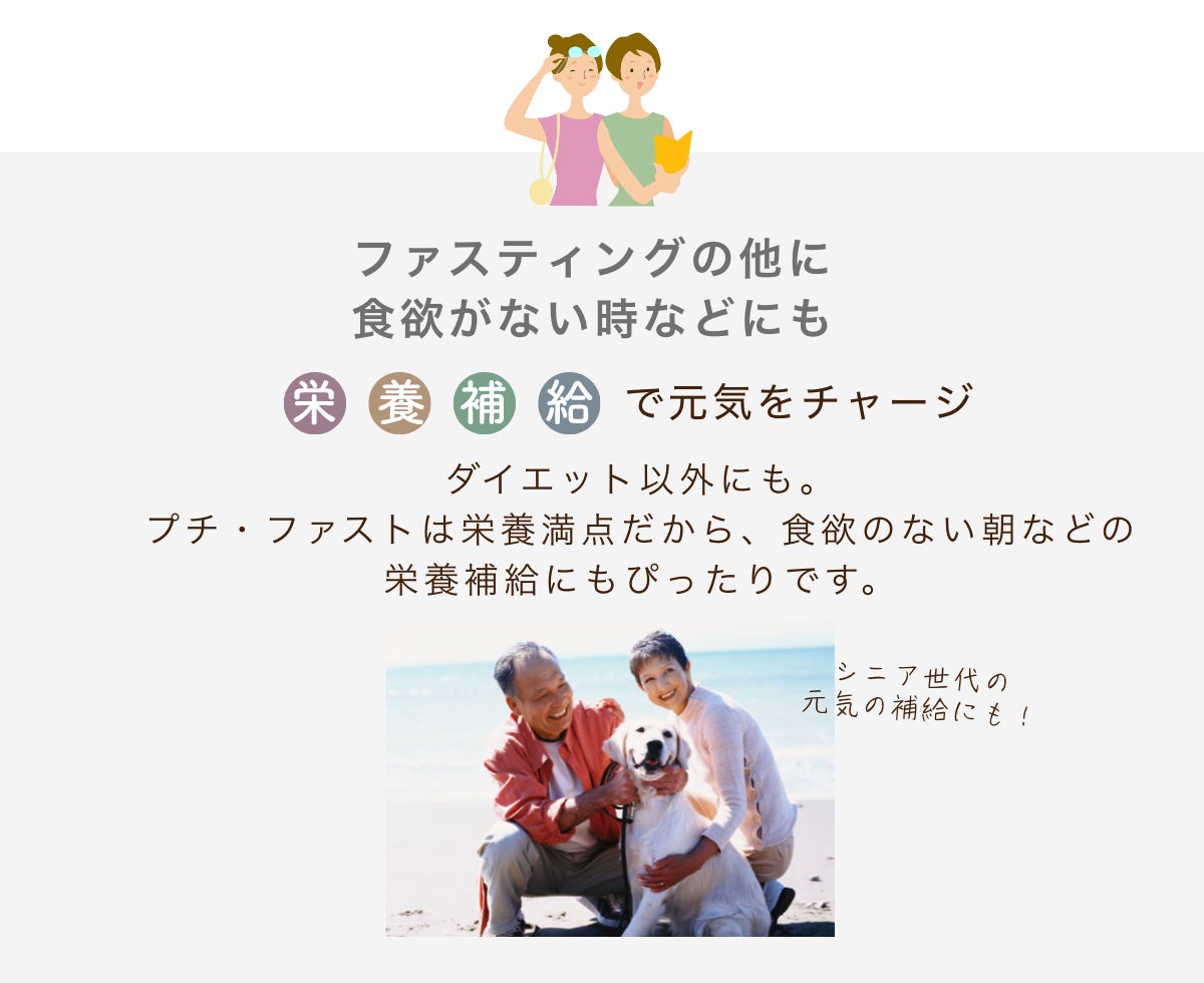 美容健康商材を多く扱う私のもとには、「ファスティングしたいけど、辛くて続かない」「瓶が大きすぎる」というお声が届いていました。そうした声に答えて開発したのが、ゆるっとファスティングできる「プチファスト」です。