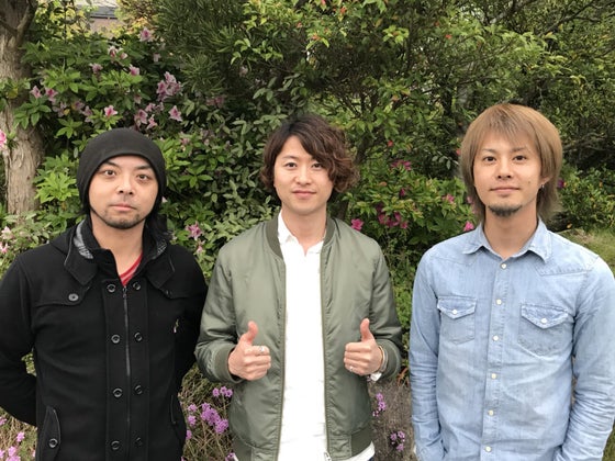 ボーカルの藤本成史、ギターの村田仁志、パーカッションの立石健児の3人で、良い時も悪い時も力を合わせて頑張ってきました。
