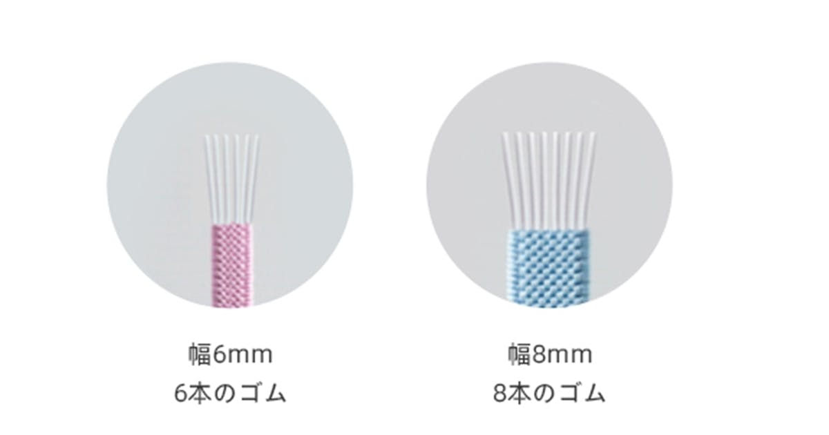 従来製品は6本に対して8本ゴムを使っていますのでより緩くなりにくく、しっかりとフィットします!