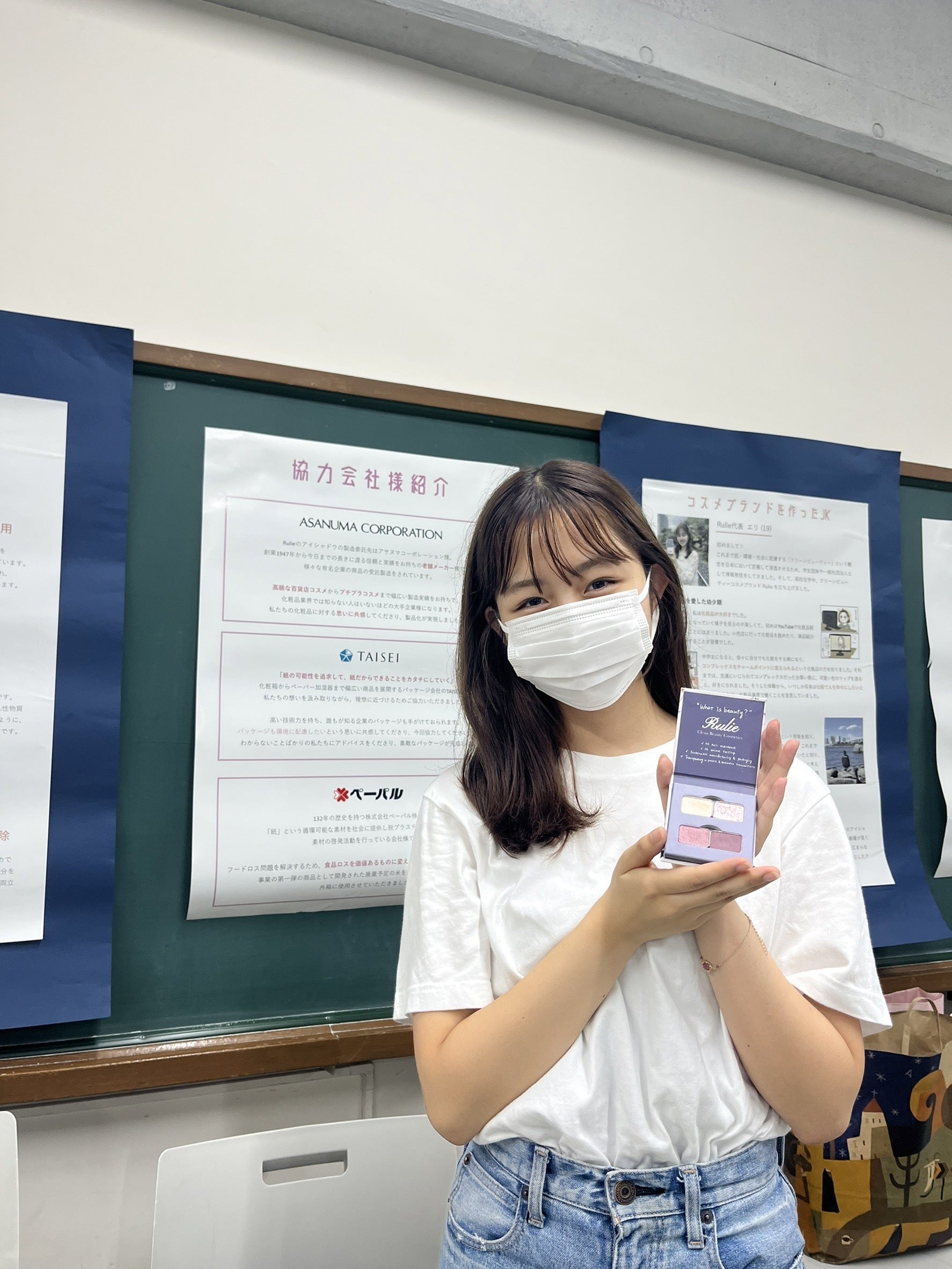 A:詰め替え可能な商品として売り出していますので、今ある色はもちろんですが、第二弾ではアイシャドウの色の種類を増やしていきたいと考えています。無駄に生産しないよう、受注生産という方法も考えております。