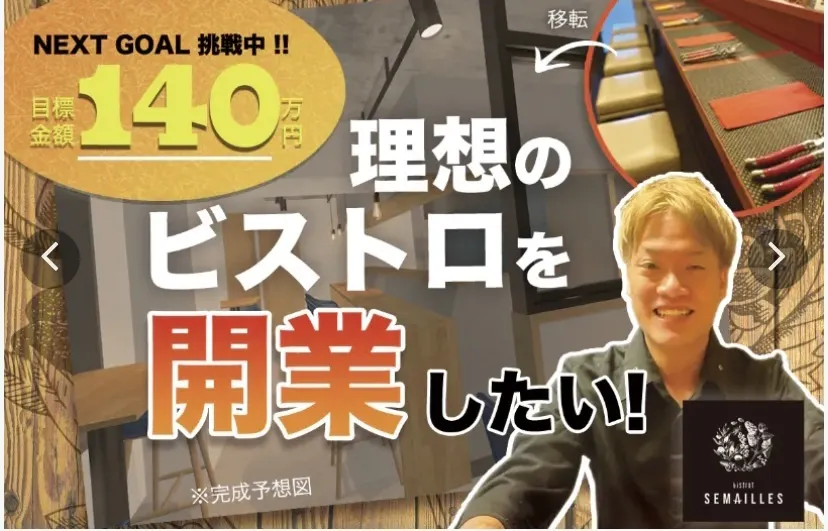 2022/09/13 08:48こんにちは!ビストロスマイユ、ゆうごです。皆さまに応援、ご支援頂いたプロジェクトが終了しました。1ヶ月弱の期間でしたが、103名様。合計2,308,000円ものご支援を頂きました。本当に感謝のひと言です。ありがとうございます!!!プロジェクトは終了しましたが、これからが本当のスタートになります。昨日、無事に消防点検と保健所の衛生検査も完了しました。あと少し完成してない部分もあるのですが、なんとかオープンまで辿り着けそうです。ご支援いただきましたリターンに関しましては、順に個別でご連絡、リターン発送をさせて頂きますのでよろしくお願い致します。応援、ご支援本当にありがとうございます!精一杯頑張りますのでこれからもよろしくお願い致します。 もっと見る