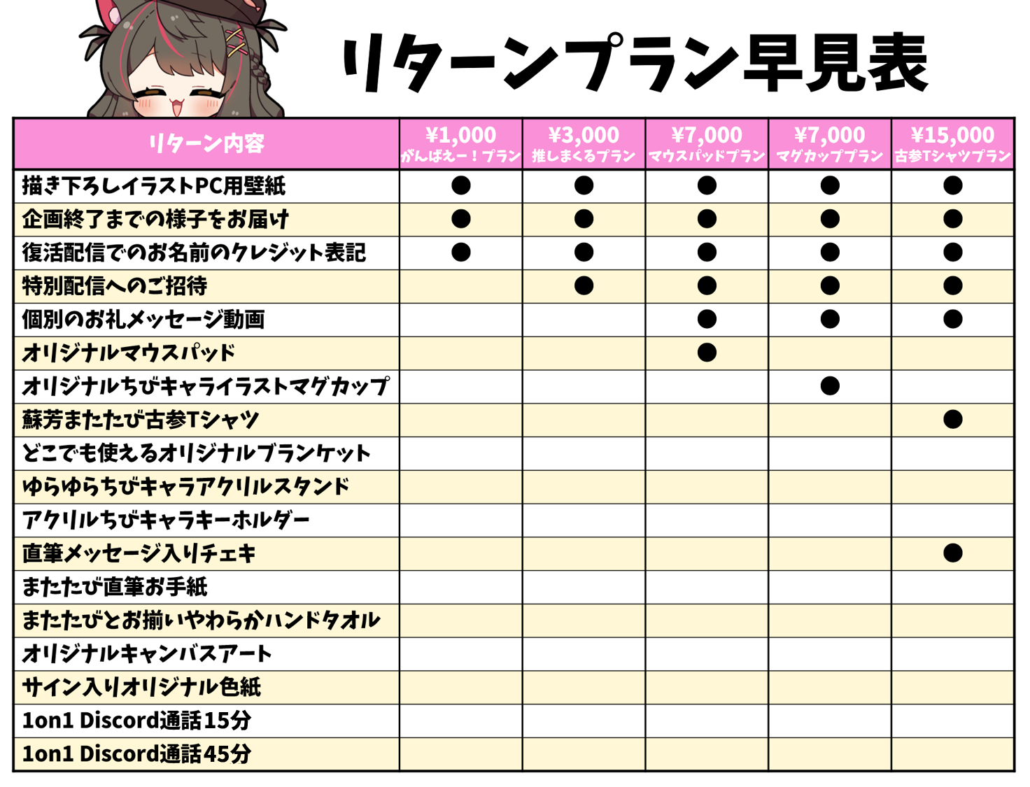 各種リターン品についての詳細は、後述の「リターングッズ詳細」をご確認ください!