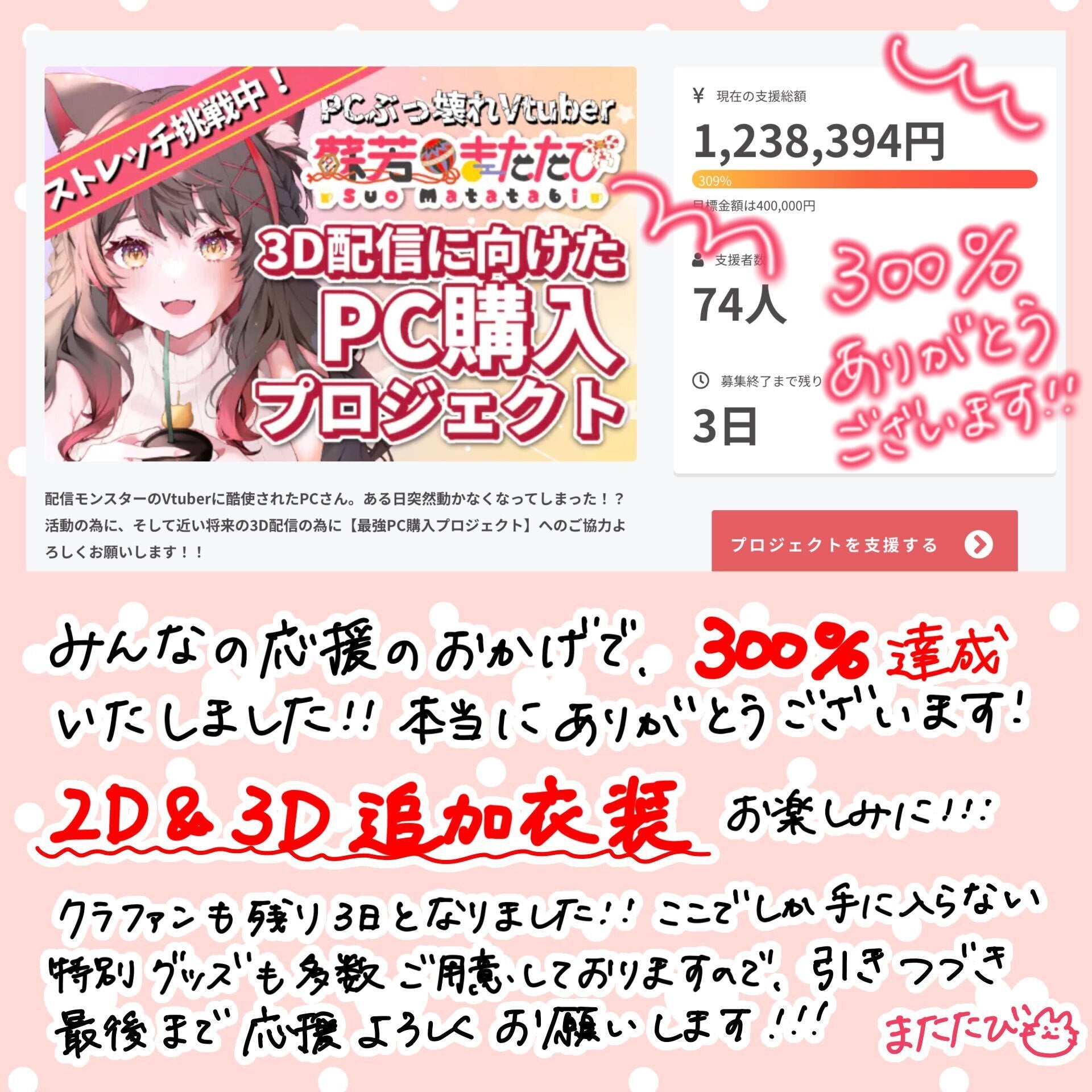 🔴300%達成:2D&3Dモデルの新衣装を実装! ← 達成!!!ありがとうございますぅぅぅ!!!