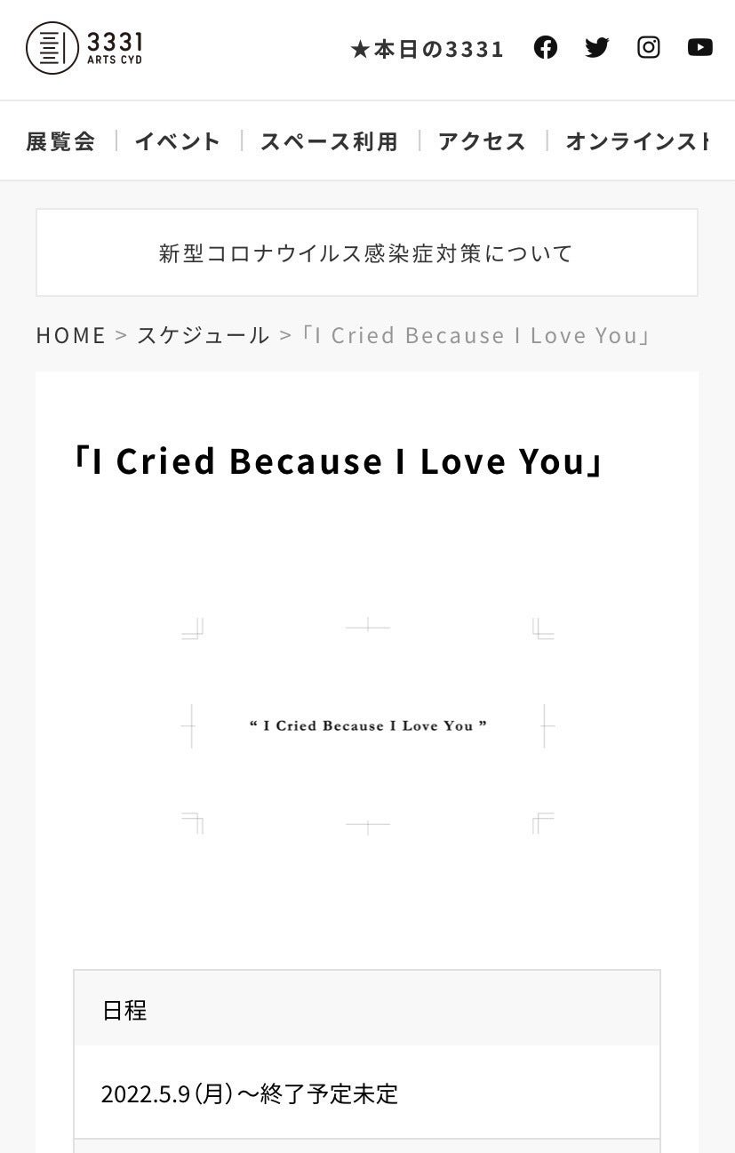 3331ArtsChiyodaさまにて開催中の展覧会(ウェブサイトはこちら)にて、本展の為に撮り直した映像作品"I Cried Because I Love You"が未完成となっています。約1分の、クールベとソクーロフをイメージした作品です。