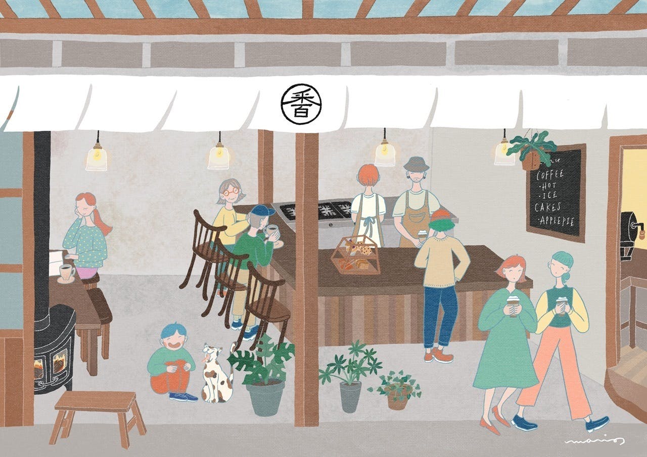 トップにも載せていますが、こちらが「里山の喫茶店 百番珈琲」をテーマに書いて頂いた一枚です。