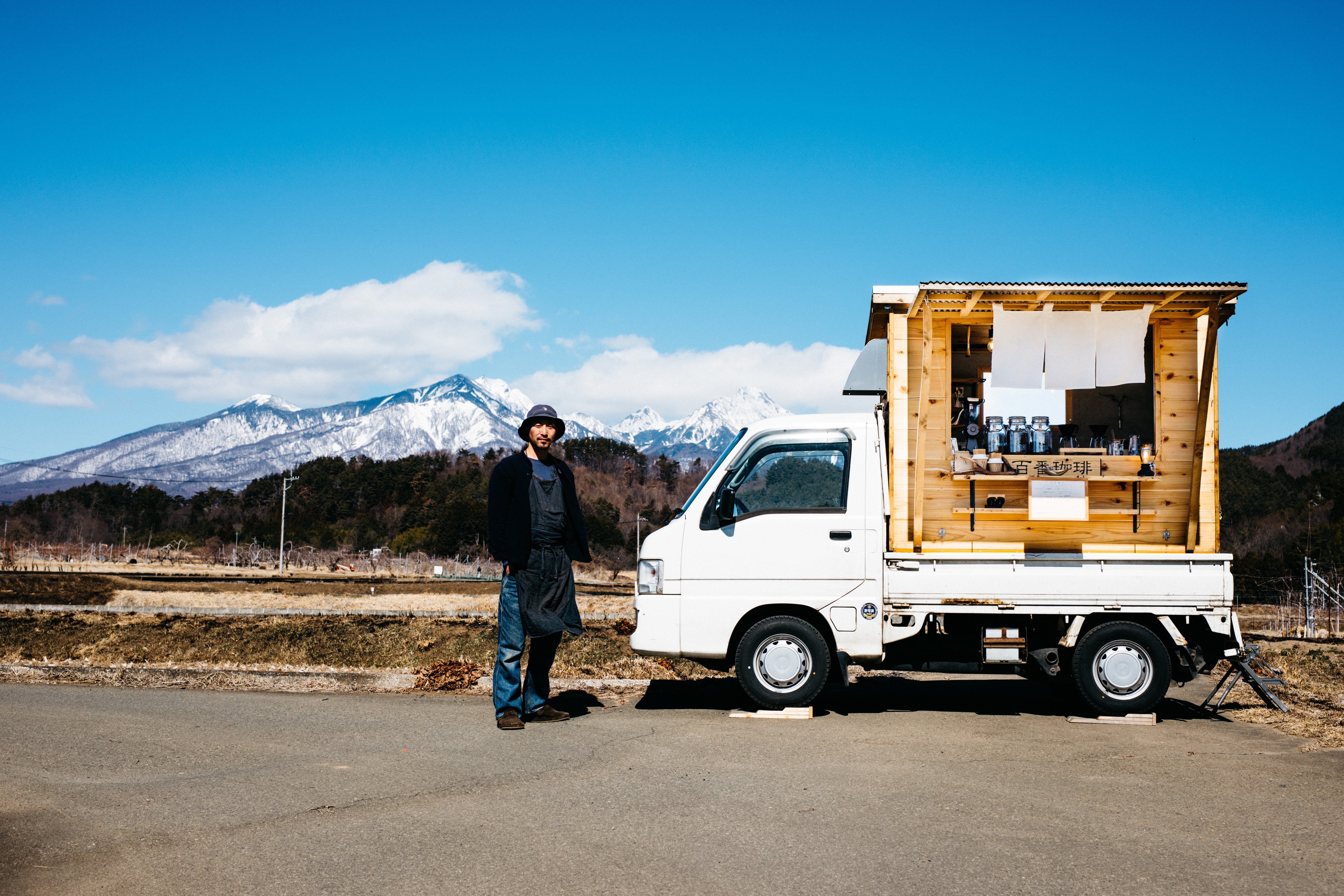 2019年から山梨県北杜市でDIYの木製キッチンカー「百番珈琲」として、自家焙煎珈琲を使用したハンドドリップコーヒーをイベントや道の駅などで移動販売・提供をしています。