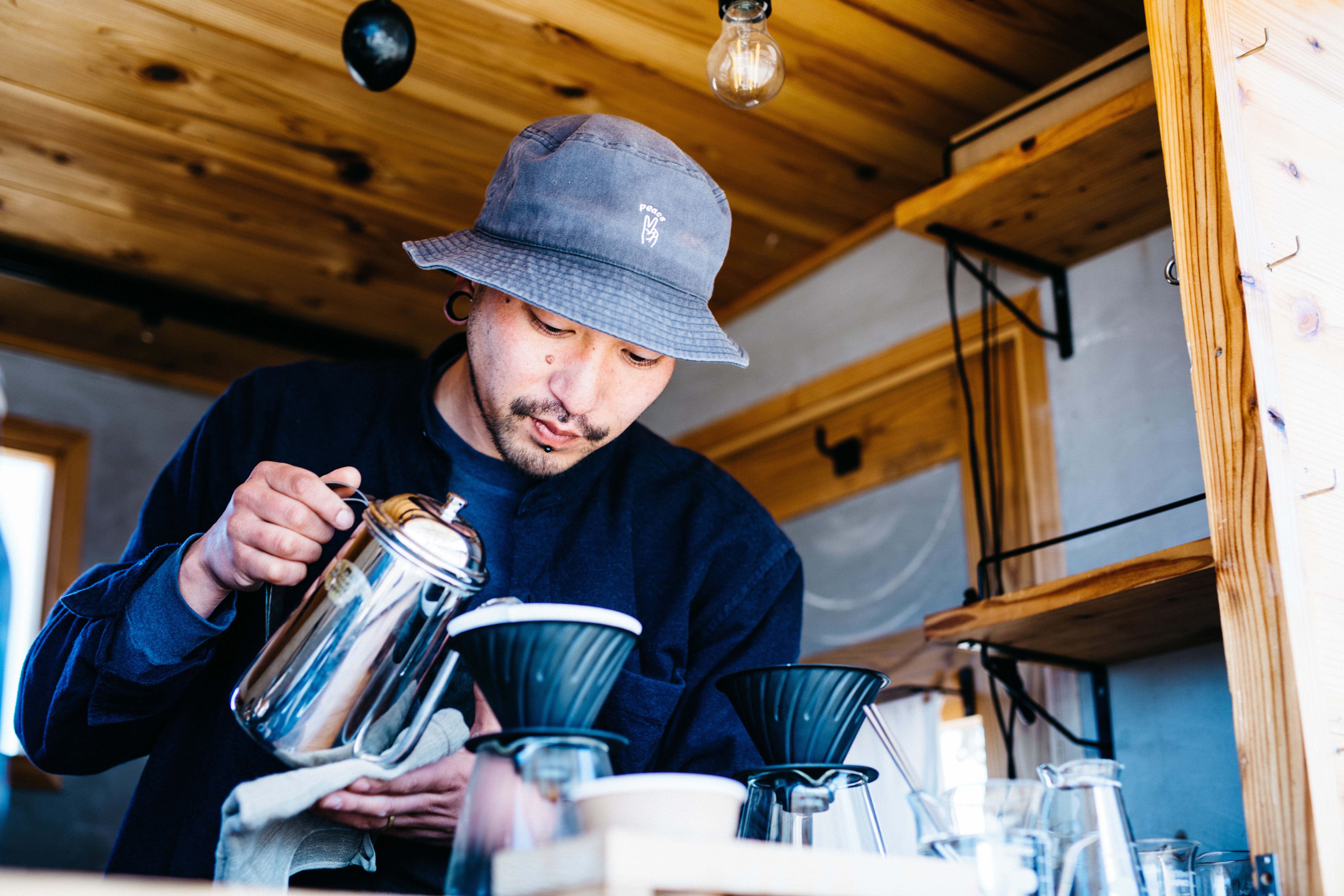 自作の木製キッチンカーで山梨県北杜市を中心に道の駅やスーパー、イベントやマルシェなどに出店し、自家焙煎珈琲を愛を込めて一杯ずつハンドドリップして提供しています。