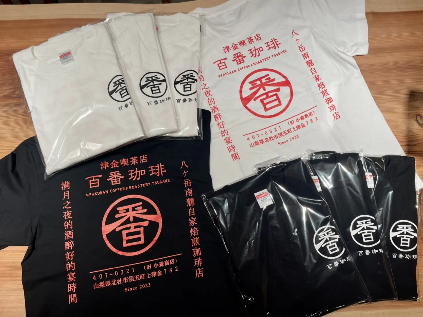 2022/11/18 17:48ご支援いただいた皆さま、大変お待たせしております!!クラファンリターン第一弾を昨日発送させて頂きました!色々あって「ミステリーオリジナルTシャツ」が最初の発送になりました。笑このリターンを発表した時点ではデザイン未定でしたが、13人もの勇気ある方がこのリターンを選んでくれました。その無言の期待に応えるためいつもお世話になっているデザイナーの友人とともに最高のTシャツを作りました!店名とロゴ、そして店舗の住所入りのバックデザイン、白と黒の2色展開です!わかりやすく左胸にもロゴと店名が入ってます。着るだけで百番珈琲の宣伝になってくれる優秀なやつが誕生しました。来年の春以降に要望が多数あれば物販するかもなんて噂もあります。他のリターンも絶賛準備中ですが、百番珈琲の妻が全て直筆で感謝の手紙を書いてくれているためもう少し時間がかかりそうです…心のこもったリターンにするため奮闘してくれています!「珈琲チケット(スタンプカード)」や新しいショップカード、オリジナルステッカーも同封する準備が着々と進んでます。今月中には「珈琲チケット」を発送する予定ですので、ご支援いただいた皆さまもうしばらくお待ちください!! もっと見る