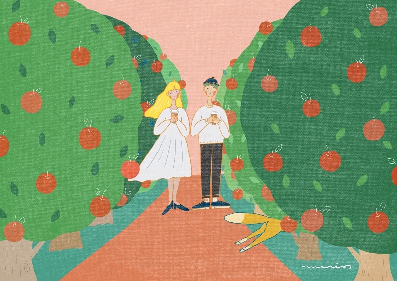 実りの秋を感じさせるりんご畑でその香りを感じながらお散歩するなんて素敵な時間です。