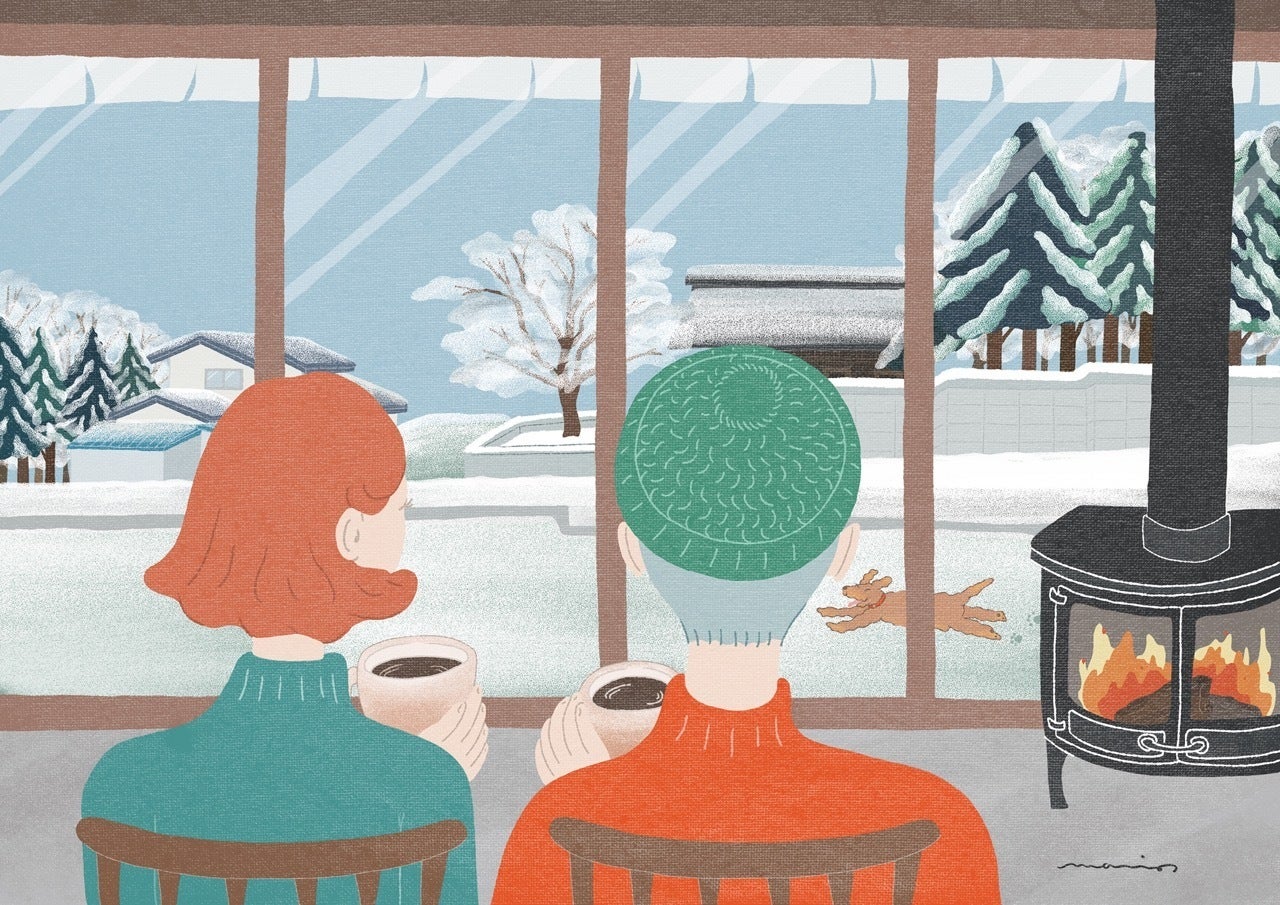 津金の寒い寒い冬、しかも雪が降った日には店内の薪ストーブにあたって雪景色を見ながらホッとしてほしい、そんなオーダーを見事に描いてくれました。