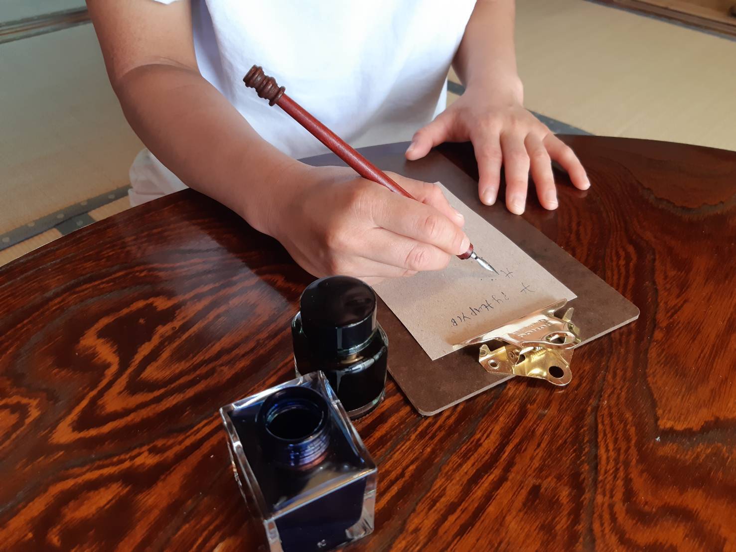 昨年に、妻のまほが小淵沢にある最高に可愛い文房具屋「PAPYRUS」さんで「つけペン」に出会いました。学生の頃は文通友達がいたり、今でも人に手紙を渡すことの多い彼女にはとてもいい趣味が見つかったなーと、僕は横で見ていて思いました。