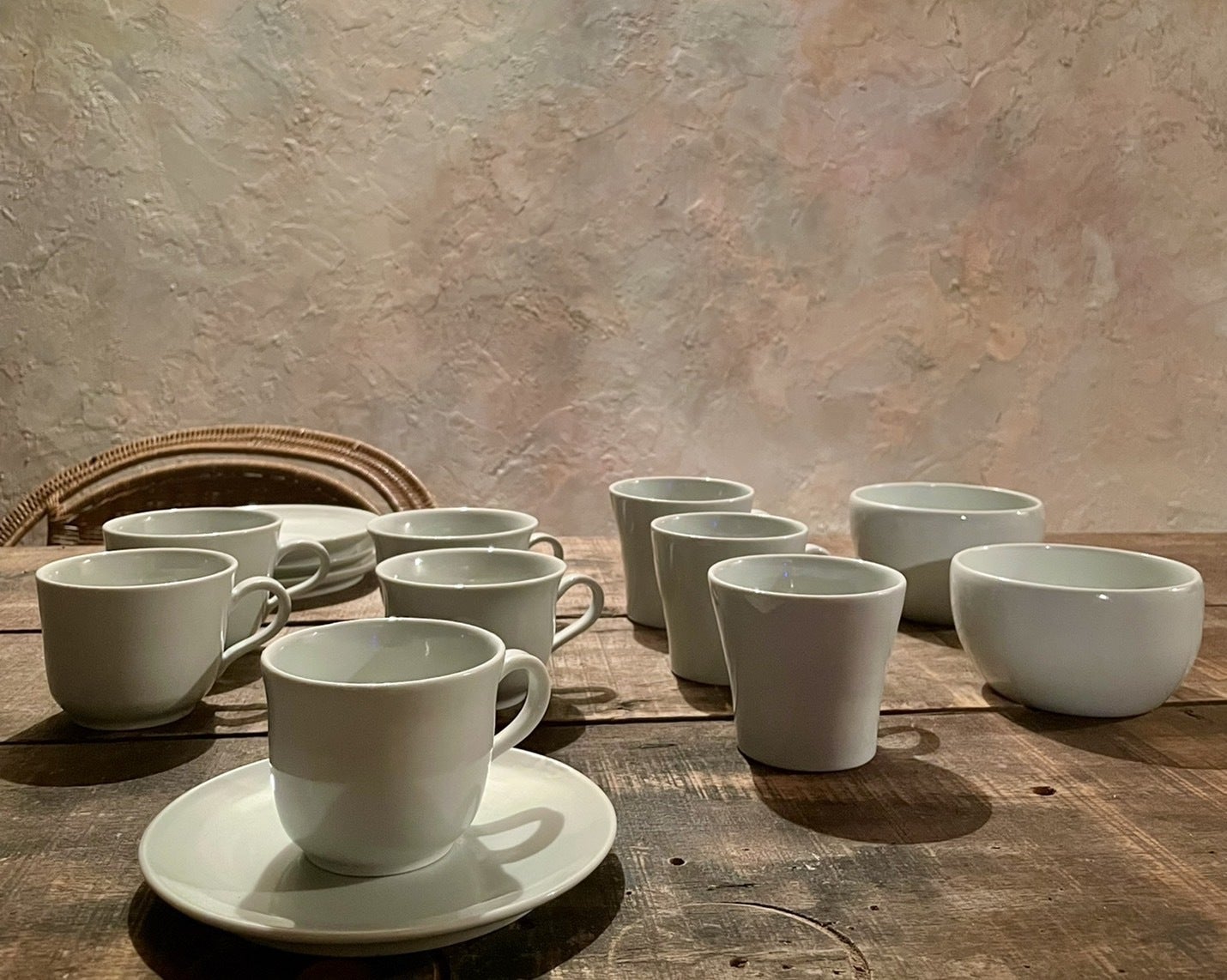 店舗オープンに向けてオリジナルのカップ&ソーサーを製作する事になり、今年の8月ごろから作家さんと打ち合わせを重ねて少しずつ形になってきました。プロジェクトページの《資金の使い道》で記載したように、こちらの製作費は今回のクラウドファンディングで皆さまから頂いたご支援の一部から使わせていただきます。制作を依頼したのは店舗ができる津金にお住まいの 【安田充岐】さん。以下作家さんの簡単なプロフィールです。 【安田充岐(Yasuda Mitsuki)−陶芸美術作家】青磁、青白磁を用いて、壺や皿等の美術作品やハレの日の器、日常が楽しくなる様な器を繊細なデザインと感性で制作中。1980年埼玉生まれ、2008年東京藝術大学陶芸科卒業、2010年同大学大学院修了現在主に個展やグループ展にて作品を発表しております。僕は器の種類にはそこまで詳しいわけでなく、漫画「へうげもの」で読んだ知識くらいしかありませんでした。しかしも普段はテイクアウト専門のキッチンカーで紙のカップしか使っておらず、喫茶店やカフェでなんとなくカップを使うくらいです。ご存じのようになんとなくこだわりが強い僕なので「緊張感と安心感の両立する、仏具のような雰囲気のものが作りたい」という僕の謎すぎる無茶振りに安田さんは困惑しながらも、イメージを擦り合わせてサンプルを作って頂きました。可愛すぎました。焼く前のベージュの感じもとてもいいですが、やはり青白磁の方がこの店内だと存在感がありとてもいい雰囲気でした。しかし奥が深いですね、カップ&ソーサー。カップの形状や飲み口の厚み、持ち手の感じなどシンプルそうに見えて考えるところがとても多いです。安田さんが作る作品は植物や鳥などをモチーフにした繊細なものを普段お作りになってるのですが、今回の日用品としてのオーダーは初めての試みらしくとても楽しそうにやってくれていて僕らもその姿を見ていると嬉しくなります。手前の取手のないものは「カフェオレボウル」でこれも最高に可愛い仕上がりになりそうです。女子が萌え袖全開で両手でカフェオレボウルを優しく包み込んで温まる姿をイメージしながらお願いしました。サイズや形の違うサンプルをたくさん作っていただいたので、家で実際に使用しながら色々と感じ方を探っているところです。10月中にひとまず完成予定です。店舗がオープンしたらカップ&ソーサーは店頭で販売する予定です。お楽しみに!
