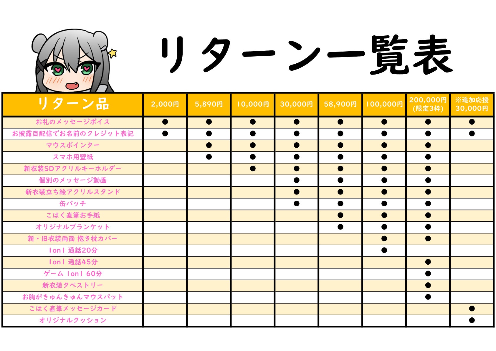 ●やむを得ず、リターングッズ内容が変更になる場合、活動報告にて告知させていただくことをご了承ください