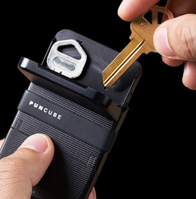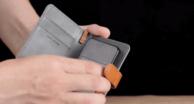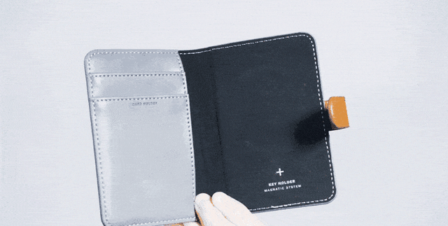 キーケースには弾力性のあるシリコンバンドがついており、最大3枚のカードを挟むこともできます。