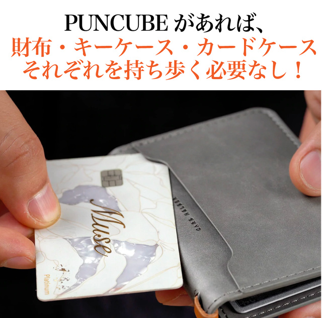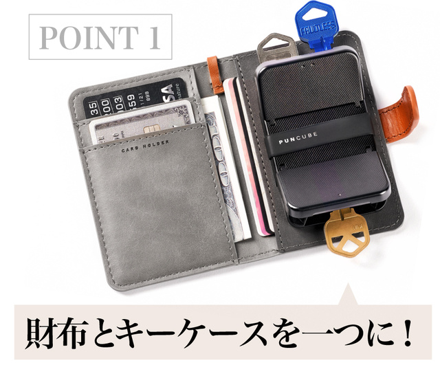 内側にPUNCUBE キーケースをしっかりと固定するスペースがあり、財布とキーケースを同時にスマートに持ち運ぶことができます。