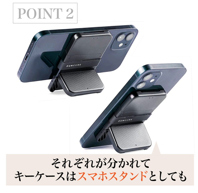 各ライフスタイルに合わせて、使用用途を変えることができ、スマートフォンの背面にキーケースをつけることで、スマホスタンドとしても使用することができます。