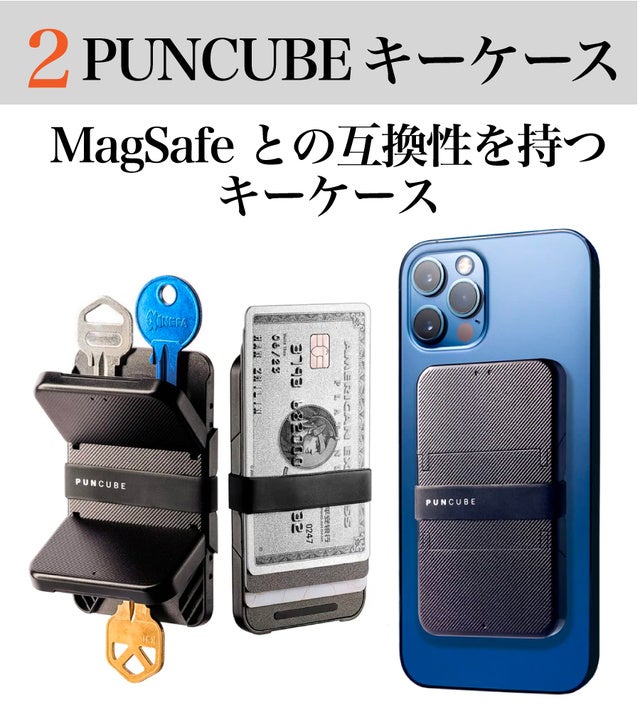 本製品は、カードケースとキーケースが一体となっており、キーケース部分はiPhone12〜14シリーズのMag Safe対応で強力な磁力によってくっついている商品となっております。