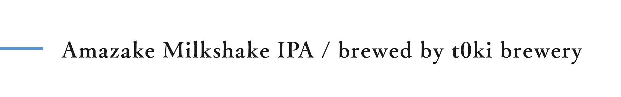 ラクトース (乳糖) とバニラビーンズを使ったミルクシェイクIPAです。米麹の香りを立たせるために、El Doradoのシングルホップ、Hazy IPAのスタイルとしては少ないホップ量で仕上げます。麹甘酒がビール酵母によって代謝されたときに出るフルーティな日本酒のような香りとホップ由来のトロピカルな香り、甘いバニラの香りを組み合わせたIPAで、煮沸工程の初期にほとんどホップを投入していないために苦味は控えめです。ラクトースから来る甘味も控えめに、米麹や日本酒を入れたアイスクリームをイメージしました。