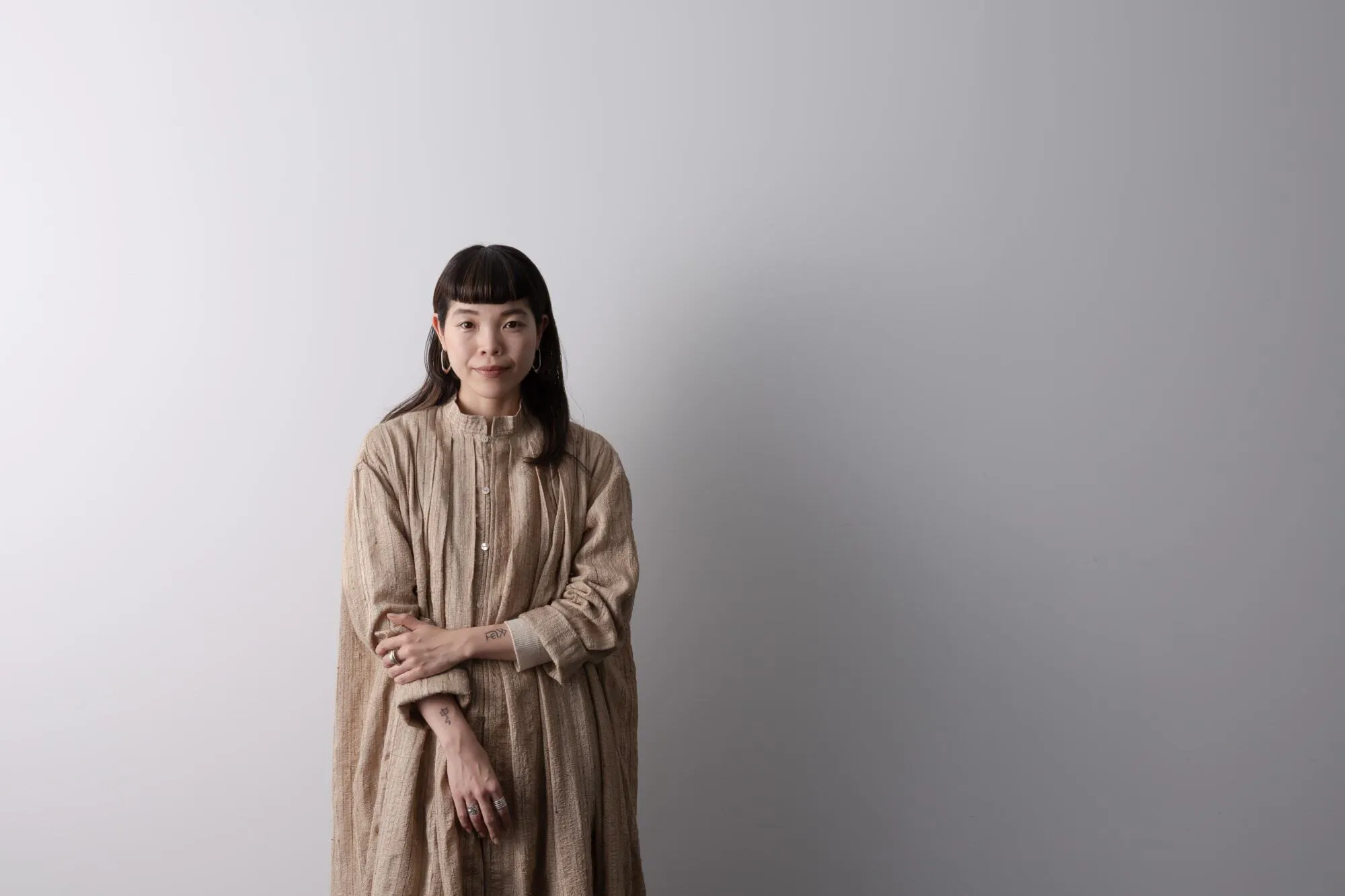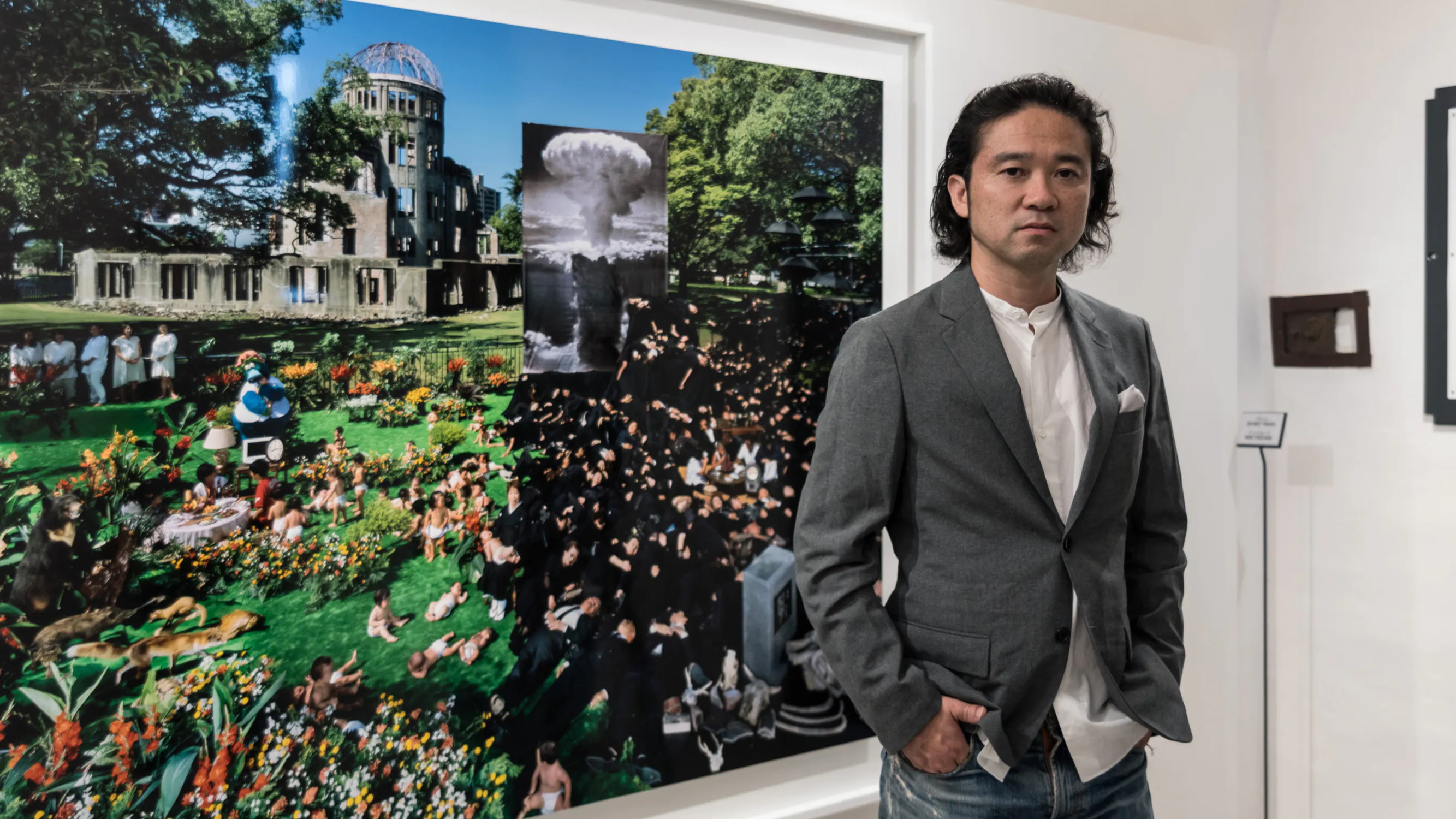 「私の作品「Manda-la」とは仏教絵画の「曼荼羅」に想を得たものです。ある人物を中心として、 その人に関わる物や人々を周囲に配置します。それらを一枚の写真におさめることで、その人物の人生やそこに映り込む様々な関係を一つの世界として凝縮してあらわすシリーズです。画像上 の合成は行わず、映るものは全て実際に準備し、平均数年かけて舞台を作りあげた上で撮影をします。