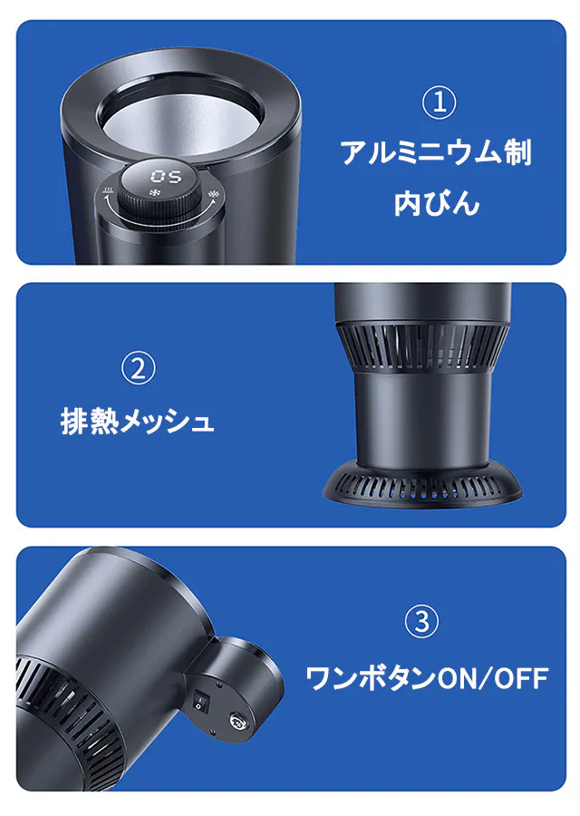 冷却と加熱の温度制御を簡単に⾏えるペルチェ技術を駆使し、短時間でドリンクを温 めたり冷やしたりすることができます。