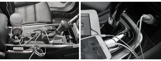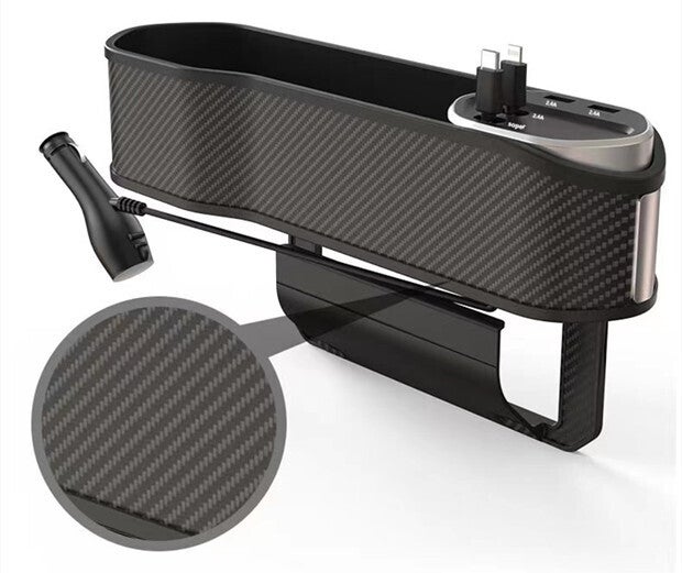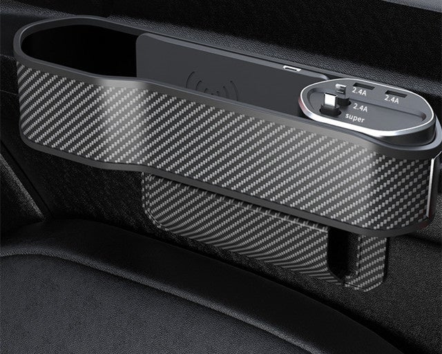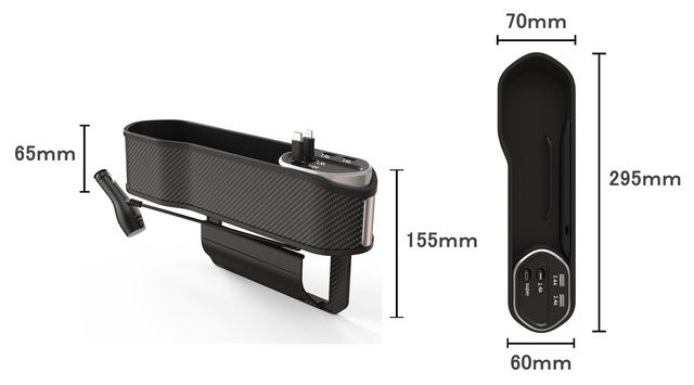 スマホ、財布、飲み物などの収納に大変便利です。その上、シガーソケットから電源を確保し、内蔵ケーブルもしくはワイヤレス充電パネルでスマホ充電することも可能です。