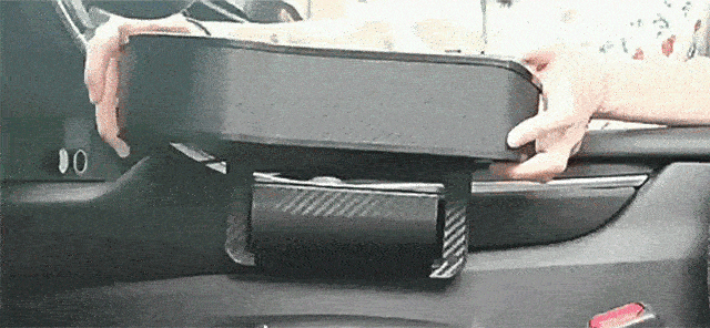 サイドブレーキやシフト、シートベルトに干渉しないようにしっかりサイズを設計し、さらに小物収納のための容量も確保しました。ほぼ全ての車種に対応し、手の届きやすい位置に設置することができます。
